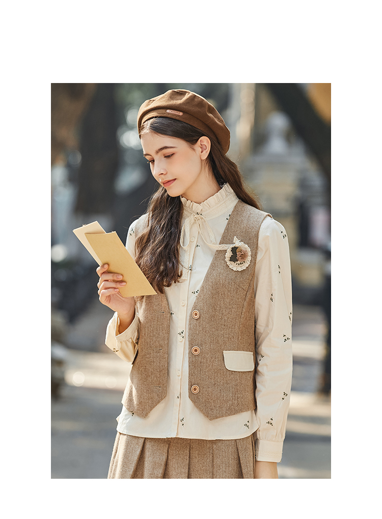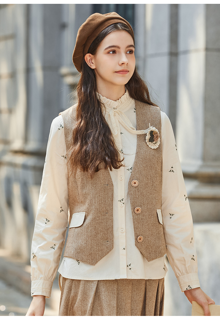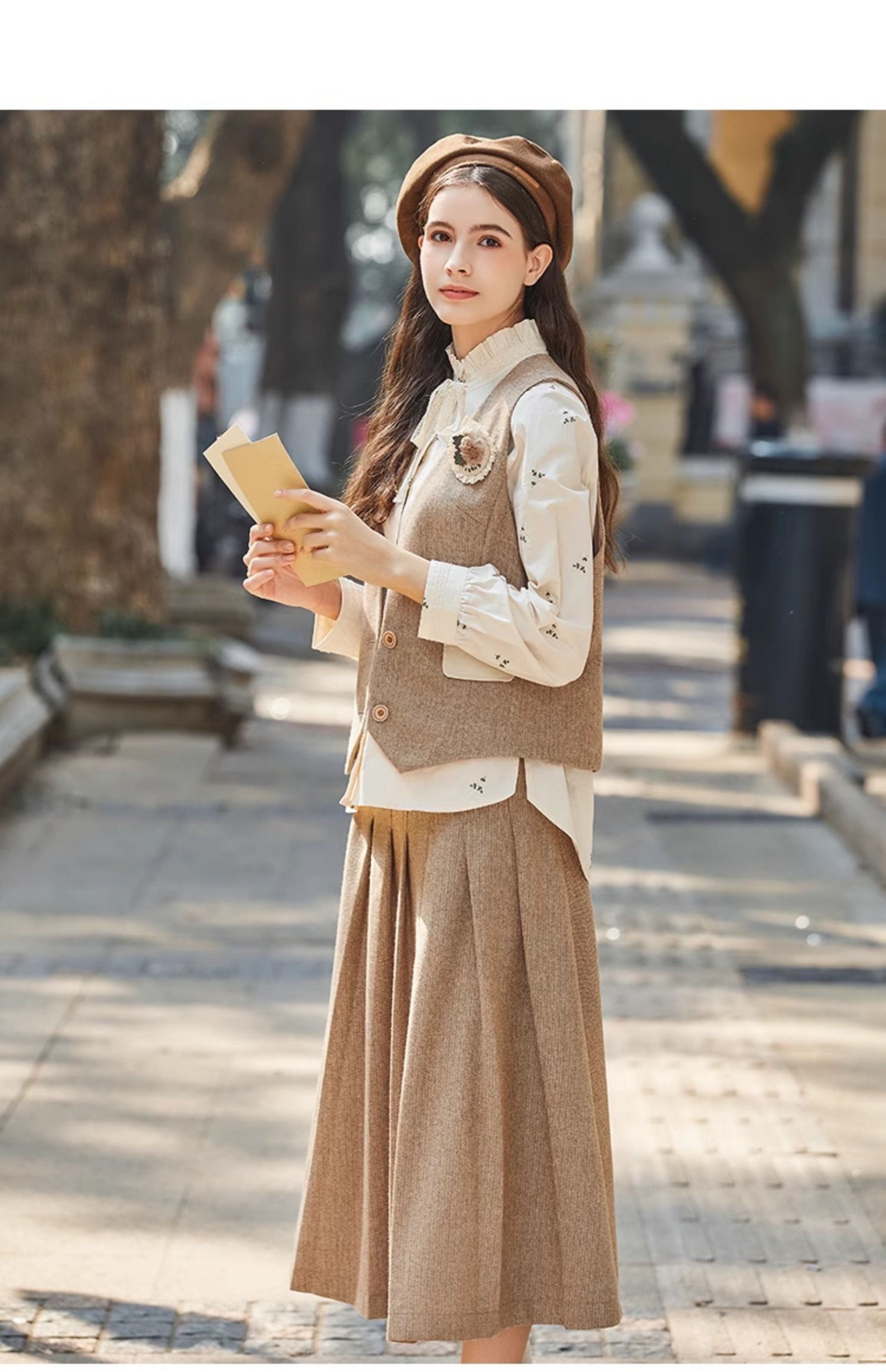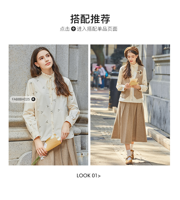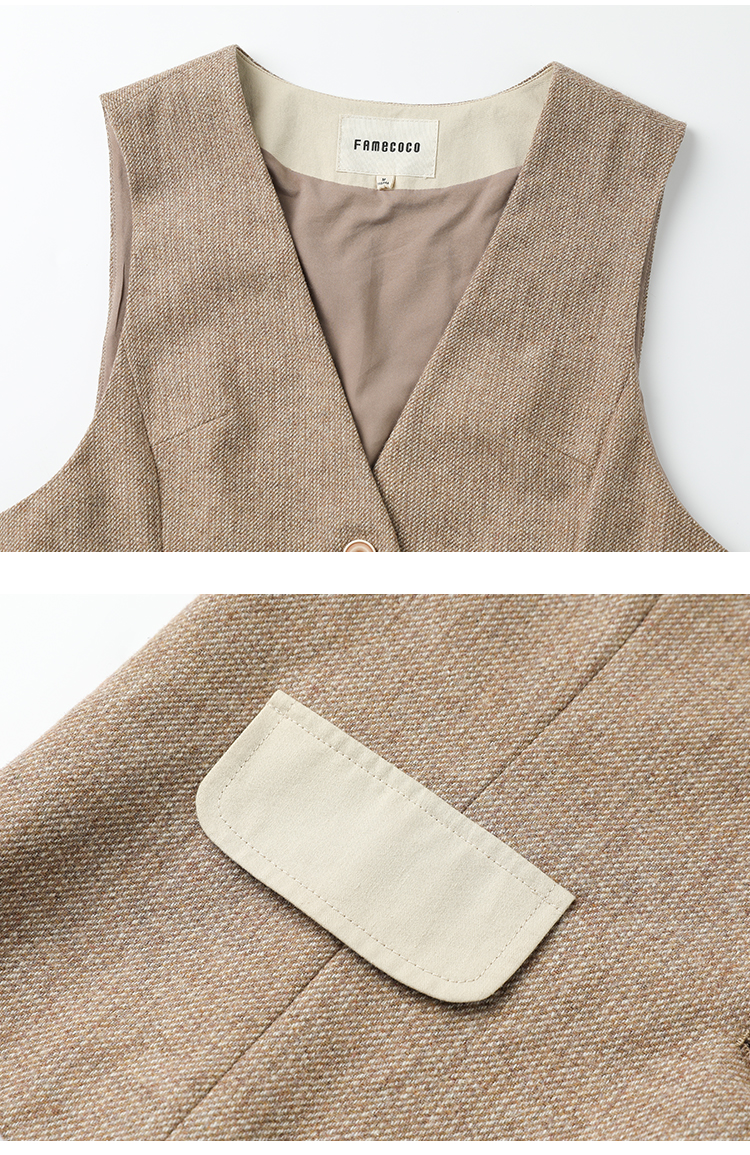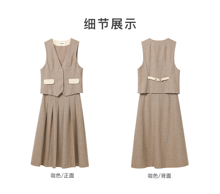 Famecoco范可儿套装开衫马甲半身裙两件套装含羊毛女FAB8EA003