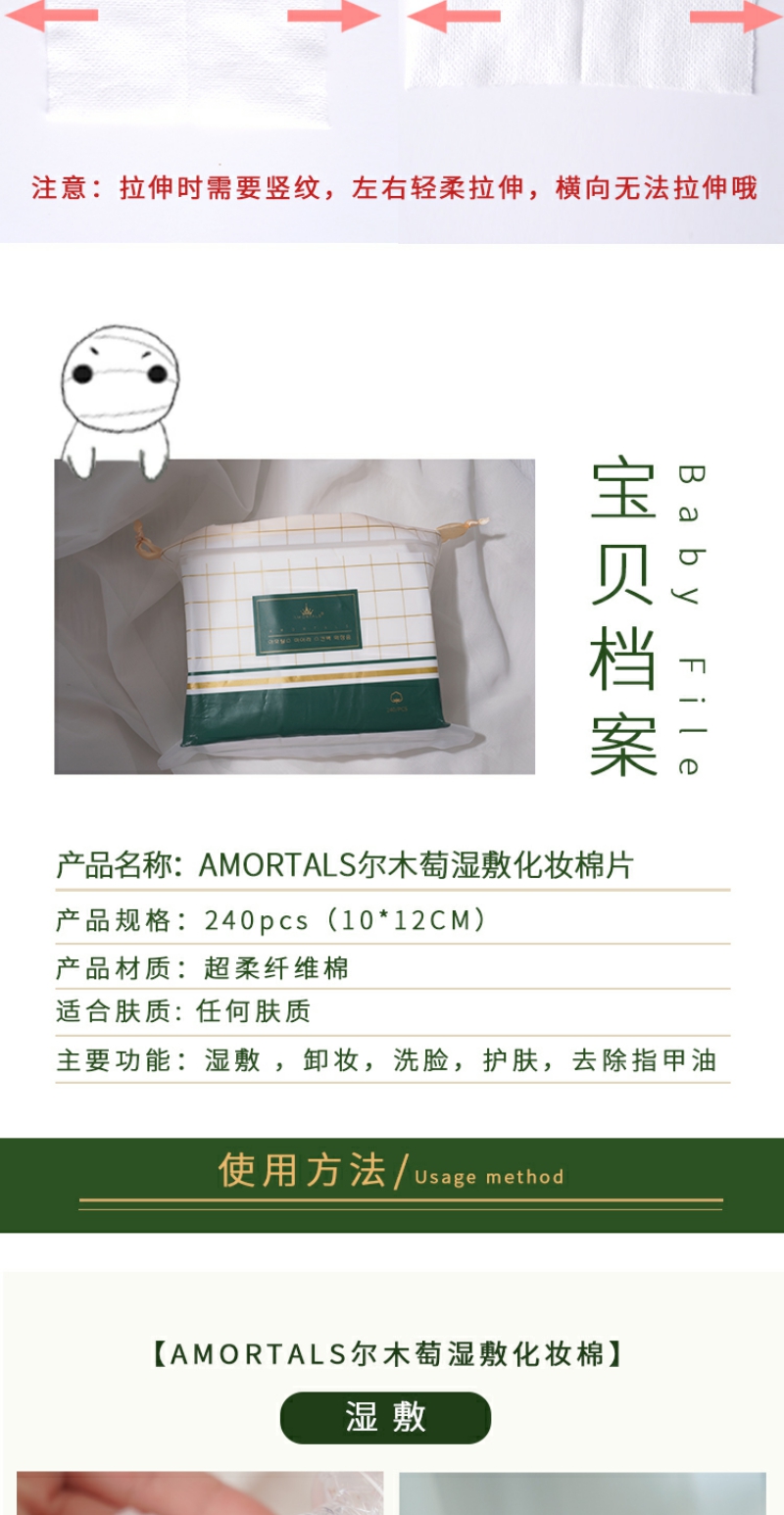 【YZ】尔木萄木乃伊化妆棉薄款湿敷240片*1包可拉伸绷带敷脸卸妆棉片