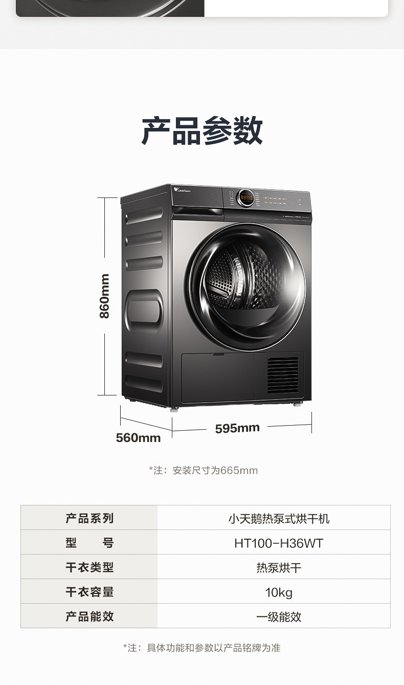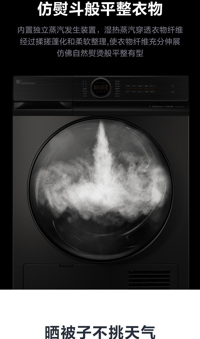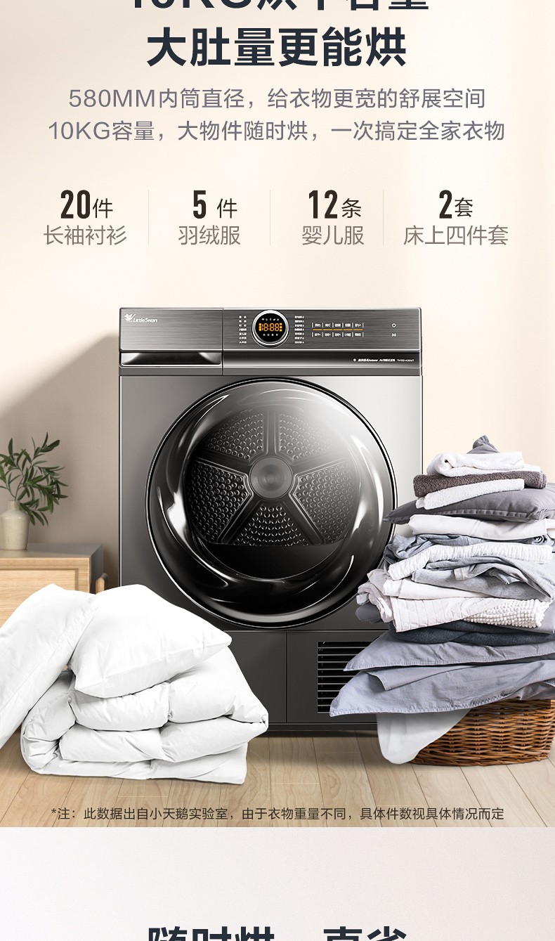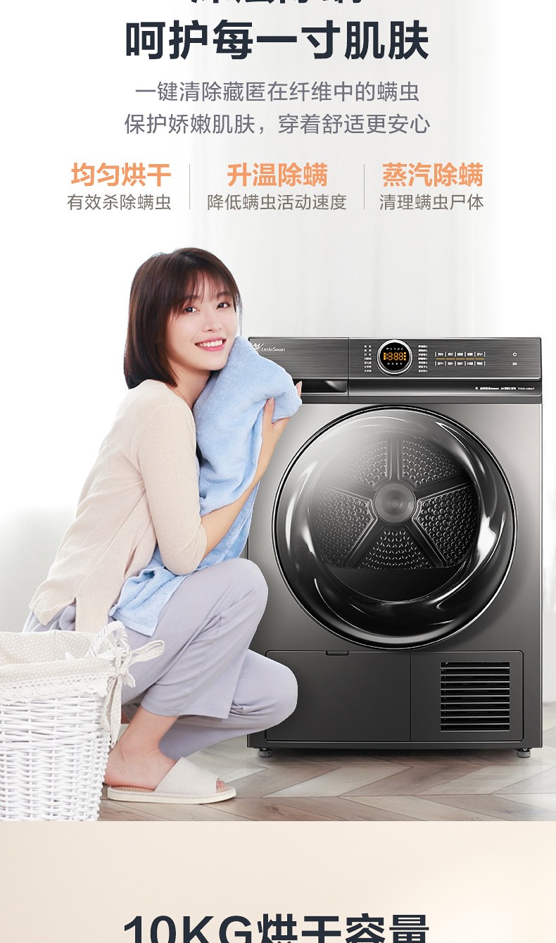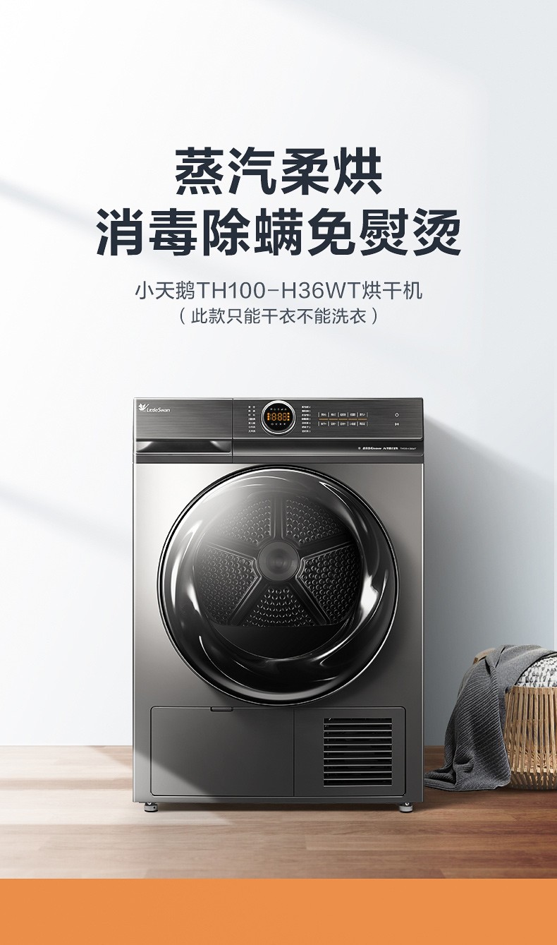 小天鹅(LittleSwan)烘干机干衣机热泵式10公斤除螨除菌衣干即停TH100-H36WT钛色