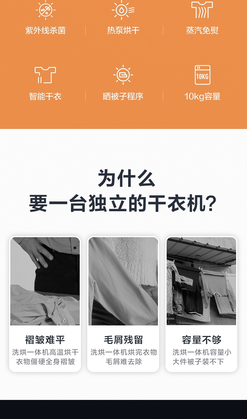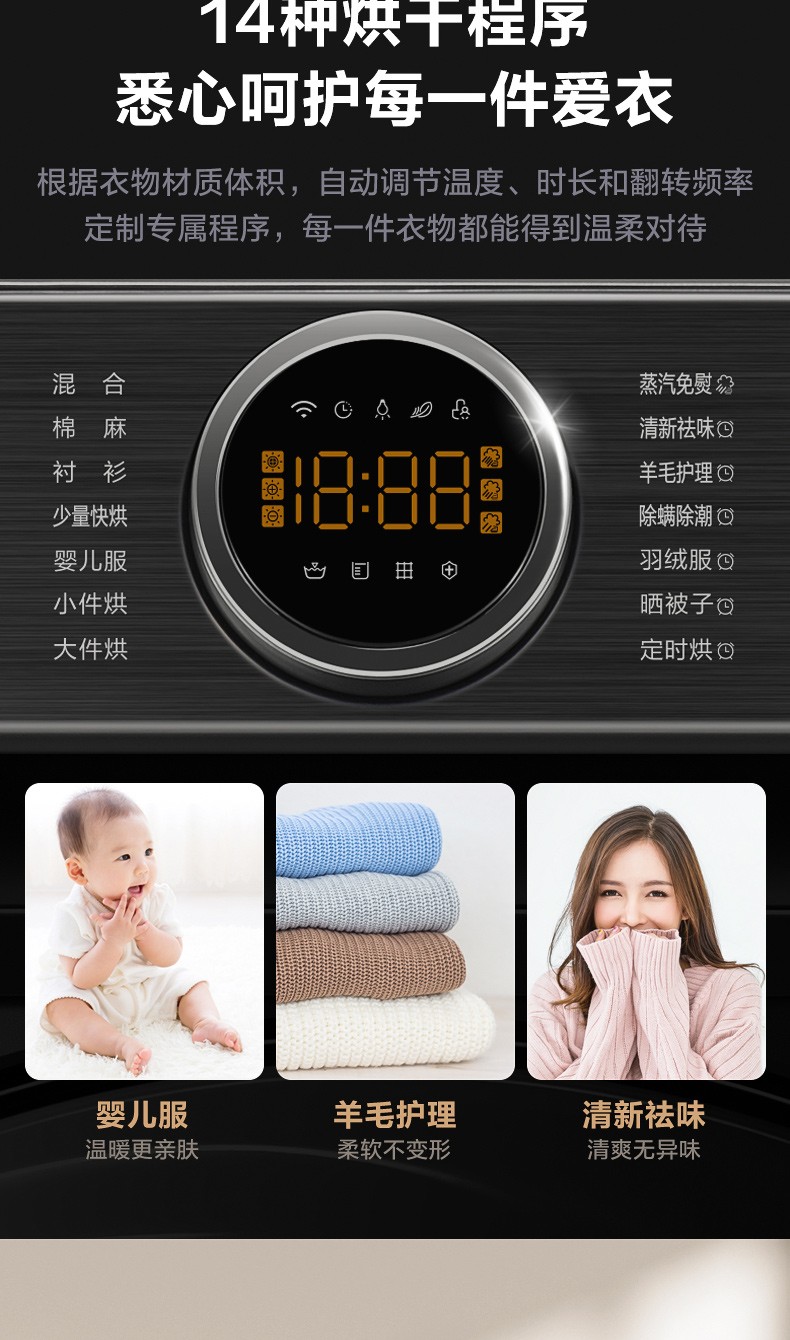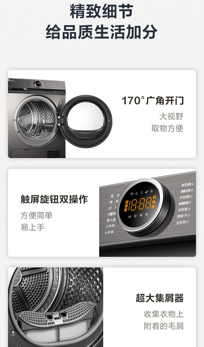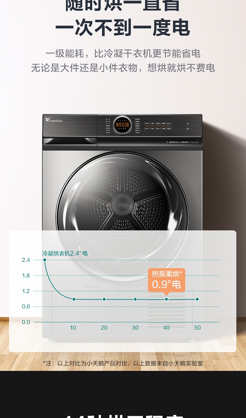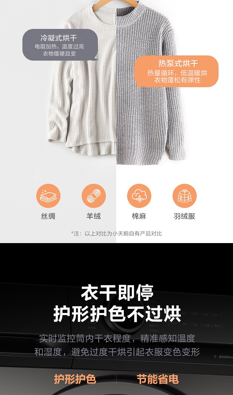 小天鹅(LittleSwan)烘干机干衣机热泵式10公斤除螨除菌衣干即停TH100-H36WT钛色
