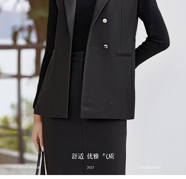 米思阳2026春季新款高级感百搭黑色戗驳领马甲外套女4814