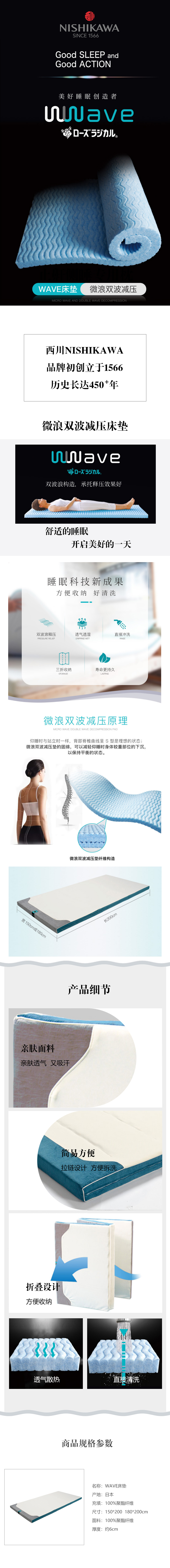 日本西川 微浪双波减压床垫