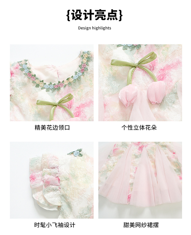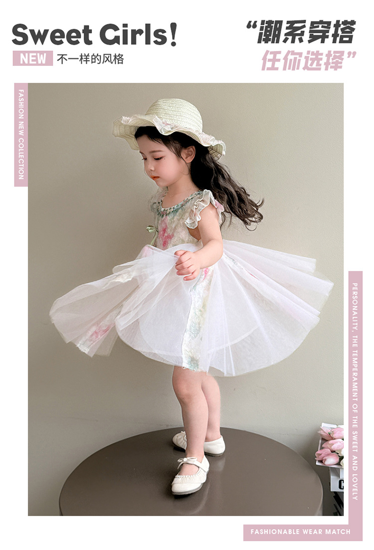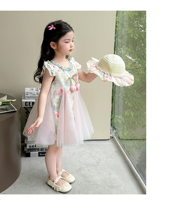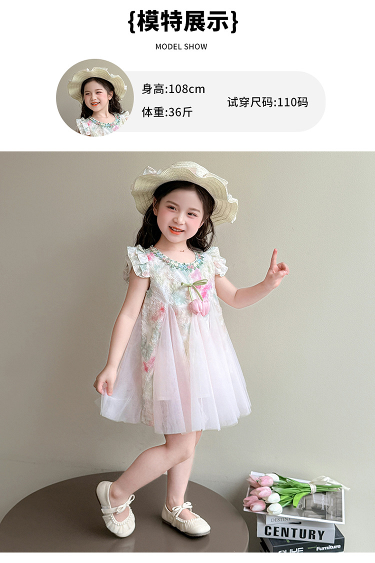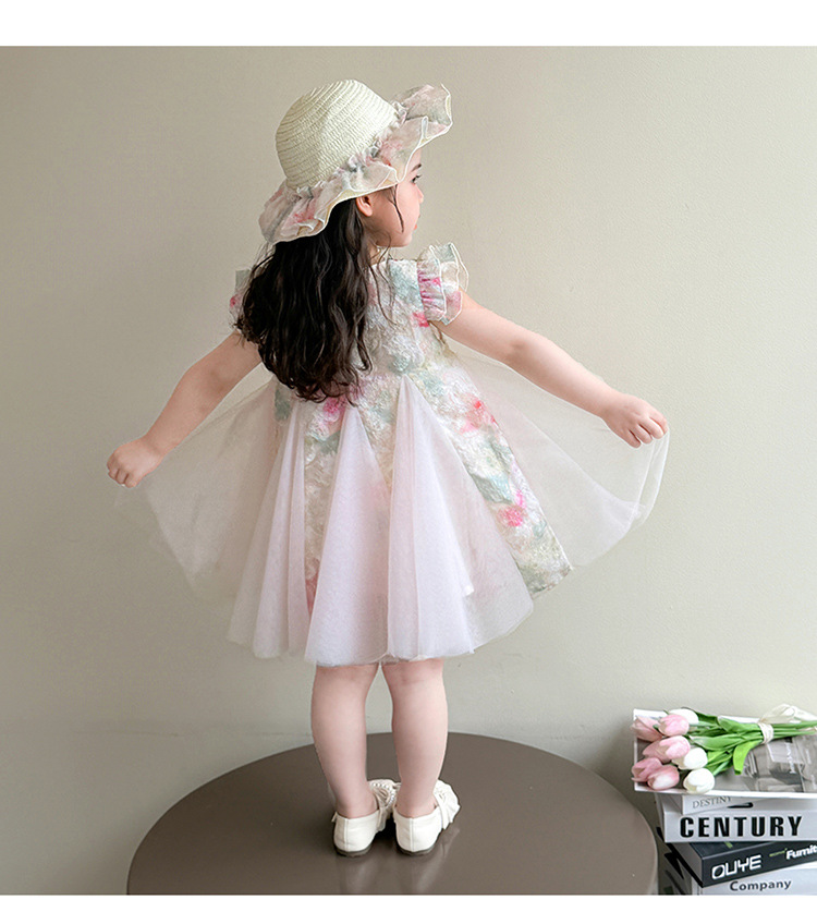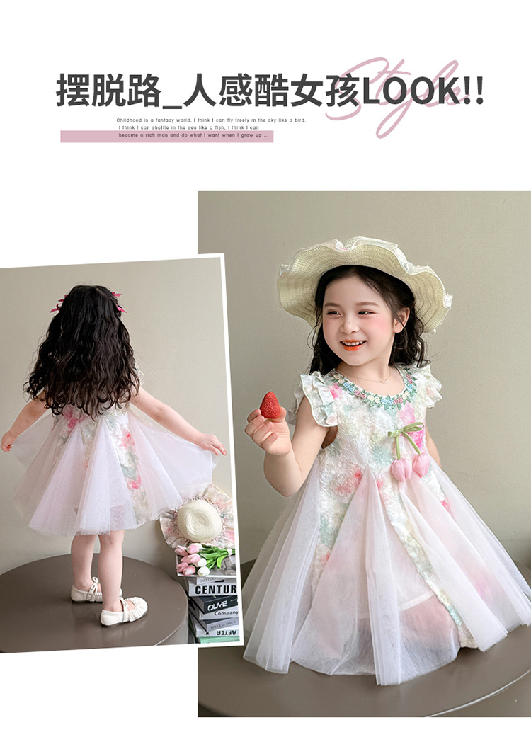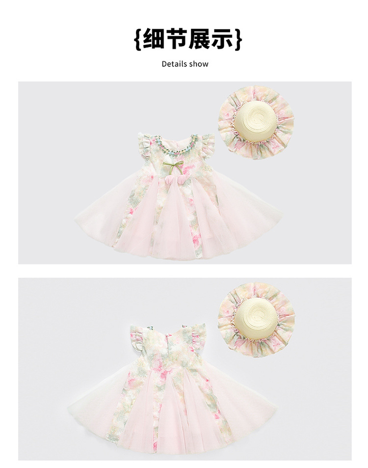 【YW】无忧购儿童装花朵飞袖连衣裙+帽子套装Q65-3(截单后3-5天发货)