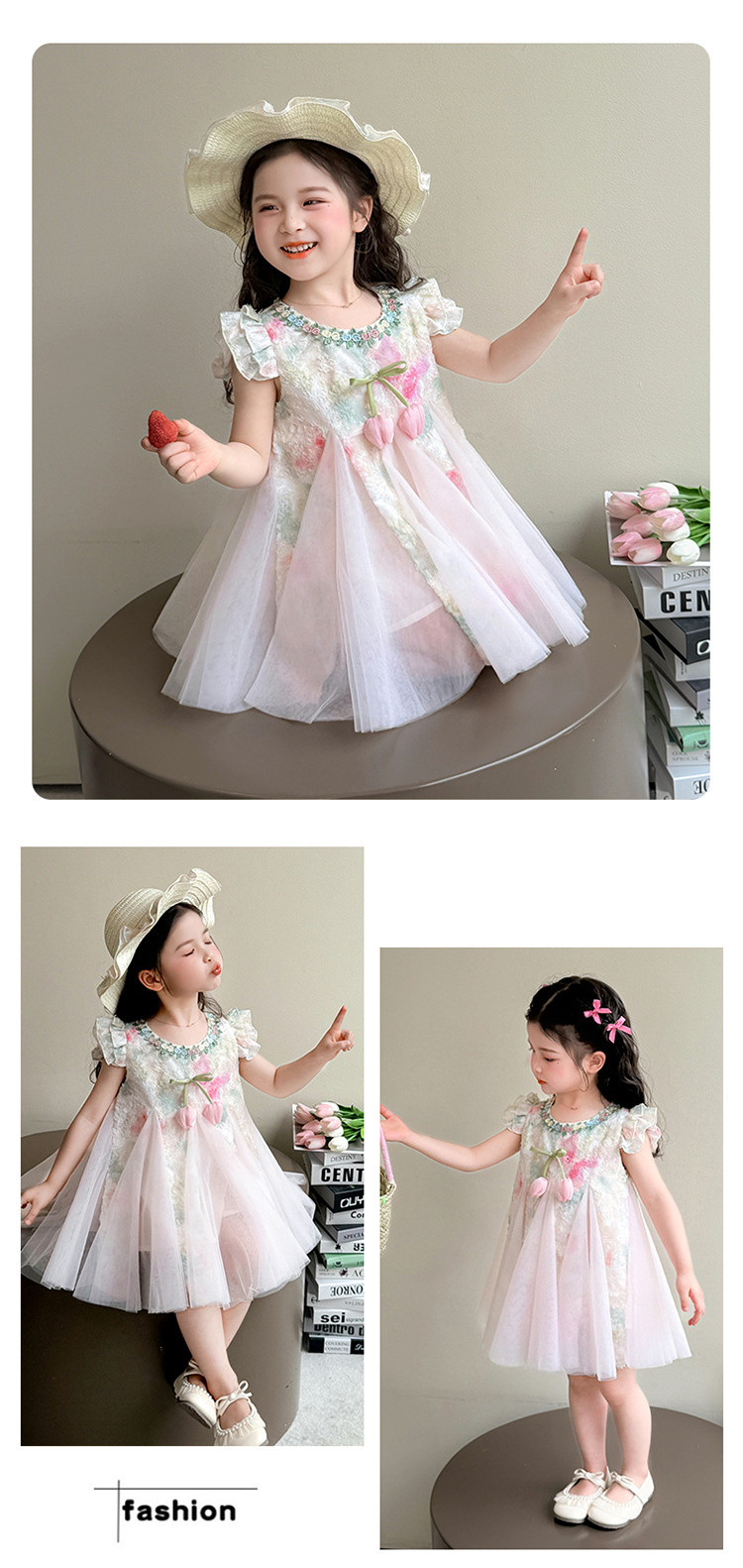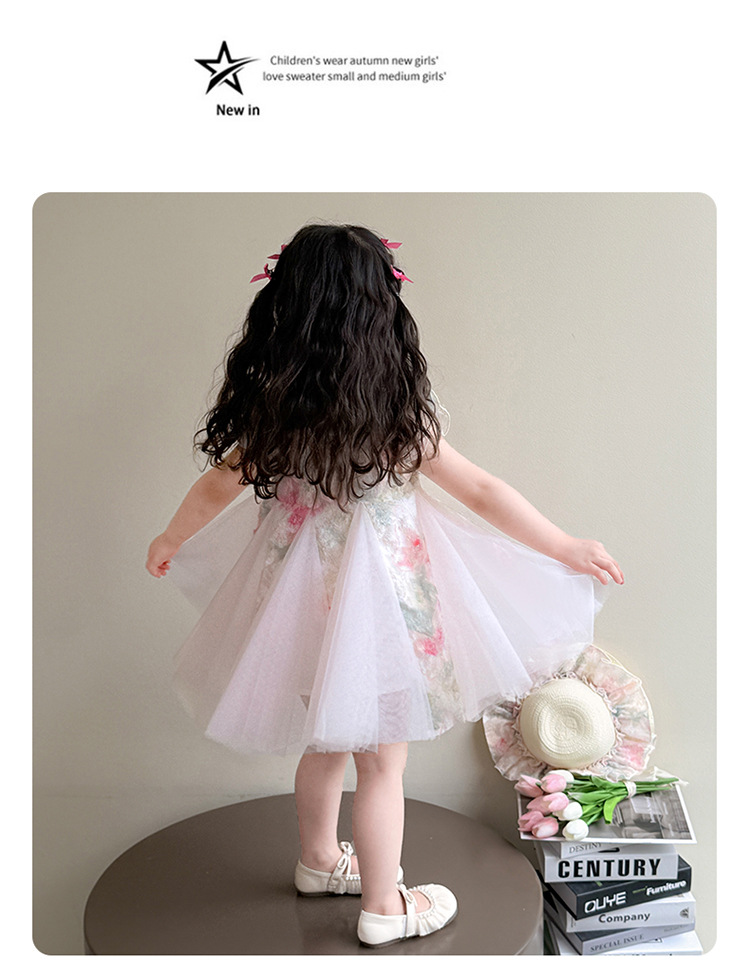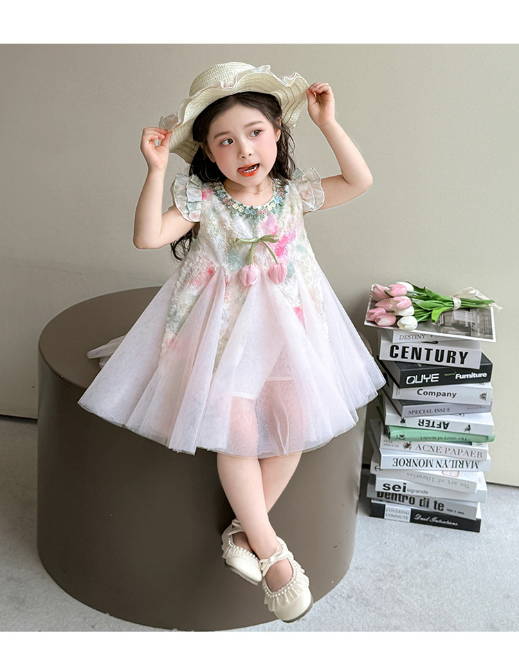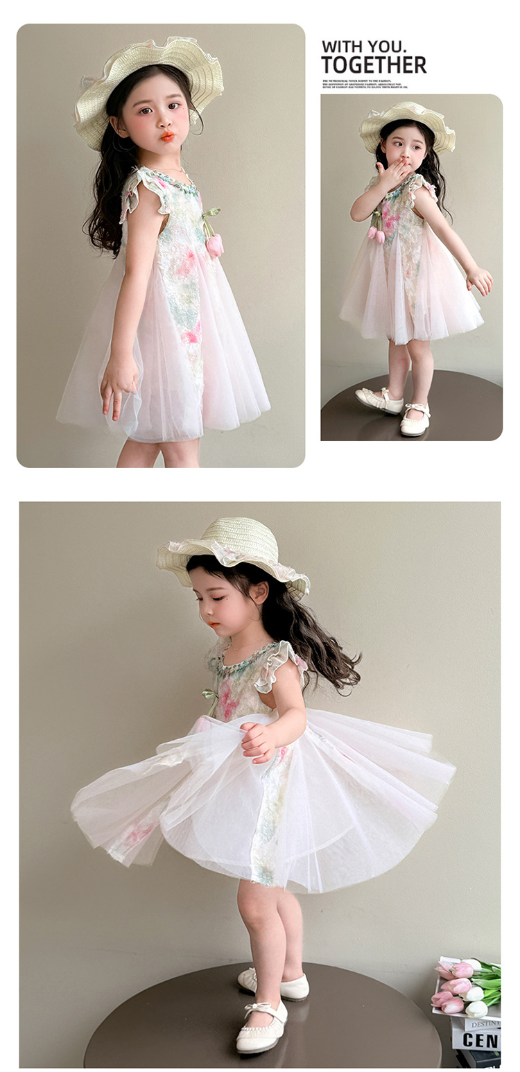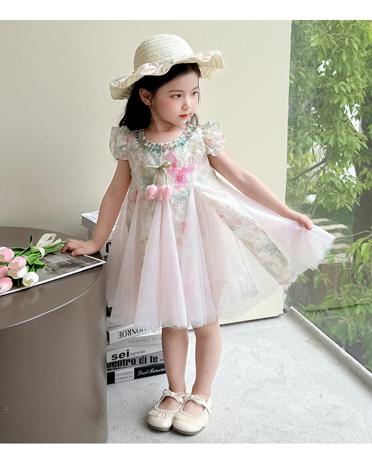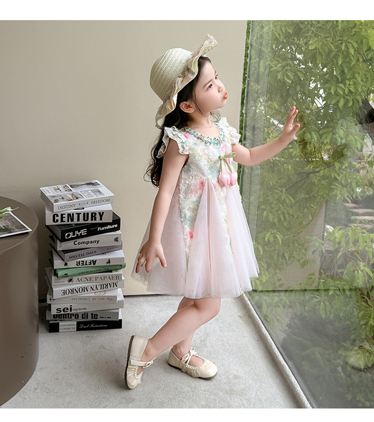 【YW】无忧购儿童装花朵飞袖连衣裙+帽子套装Q65-3(截单后3-5天发货)