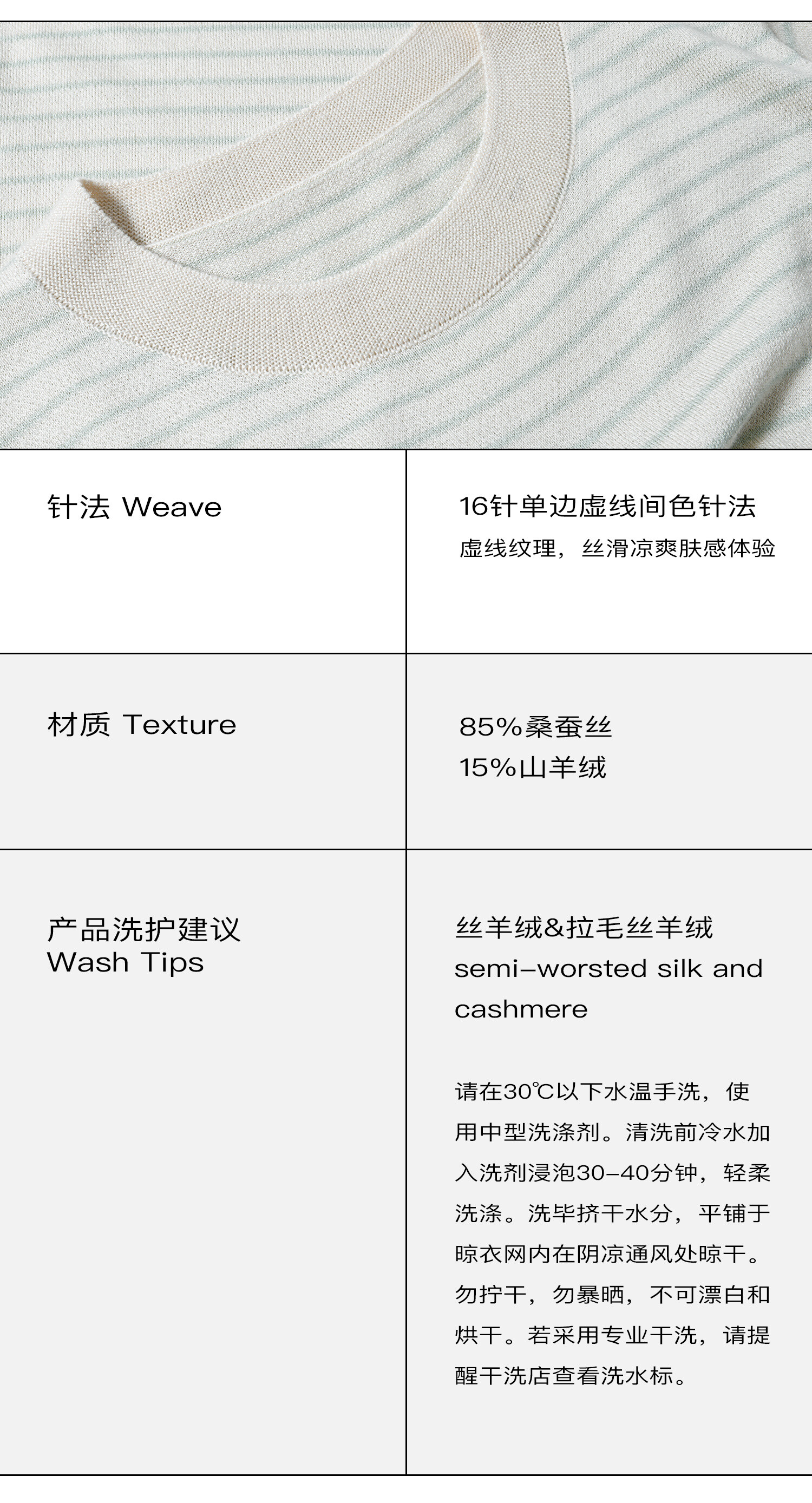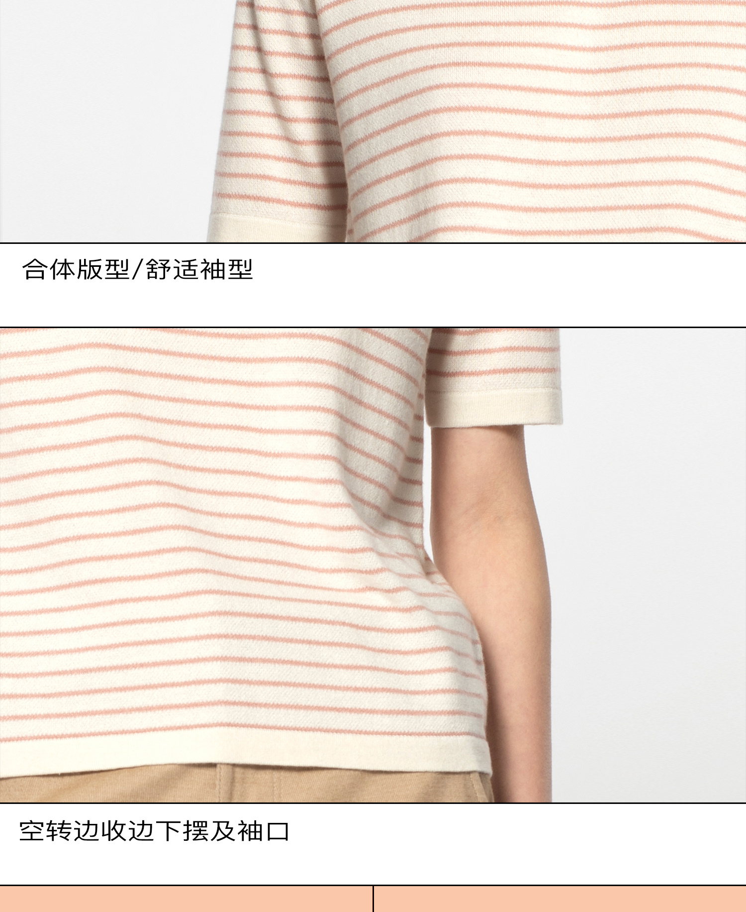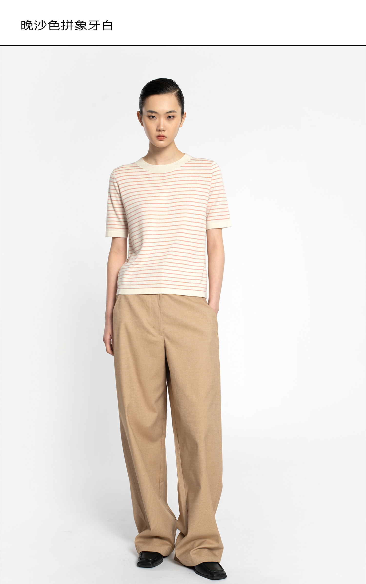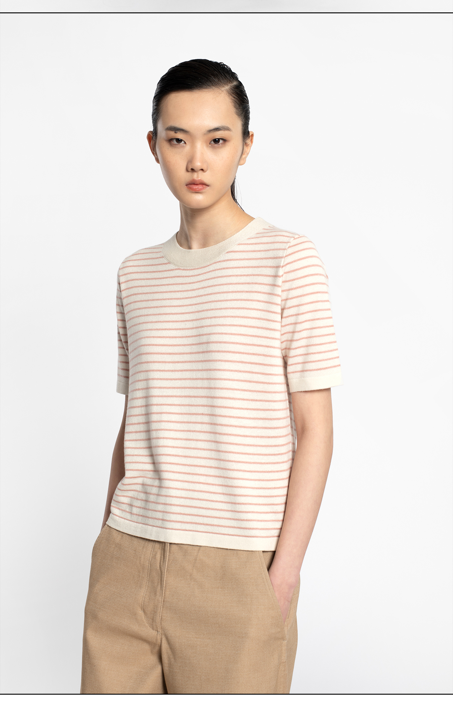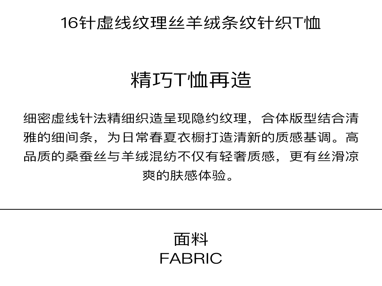 女士2022新款16针虚线纹理丝羊绒条纹针织T恤