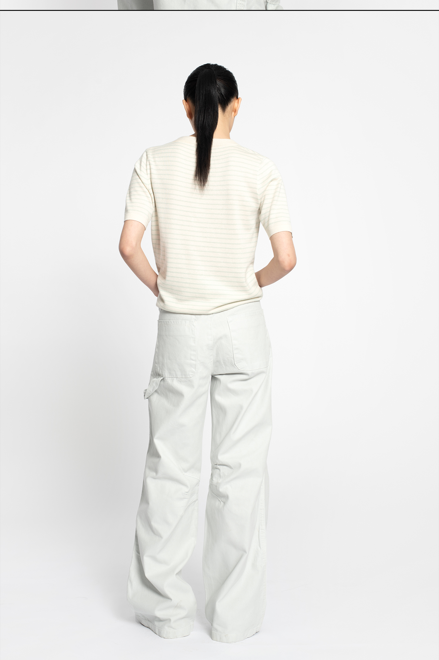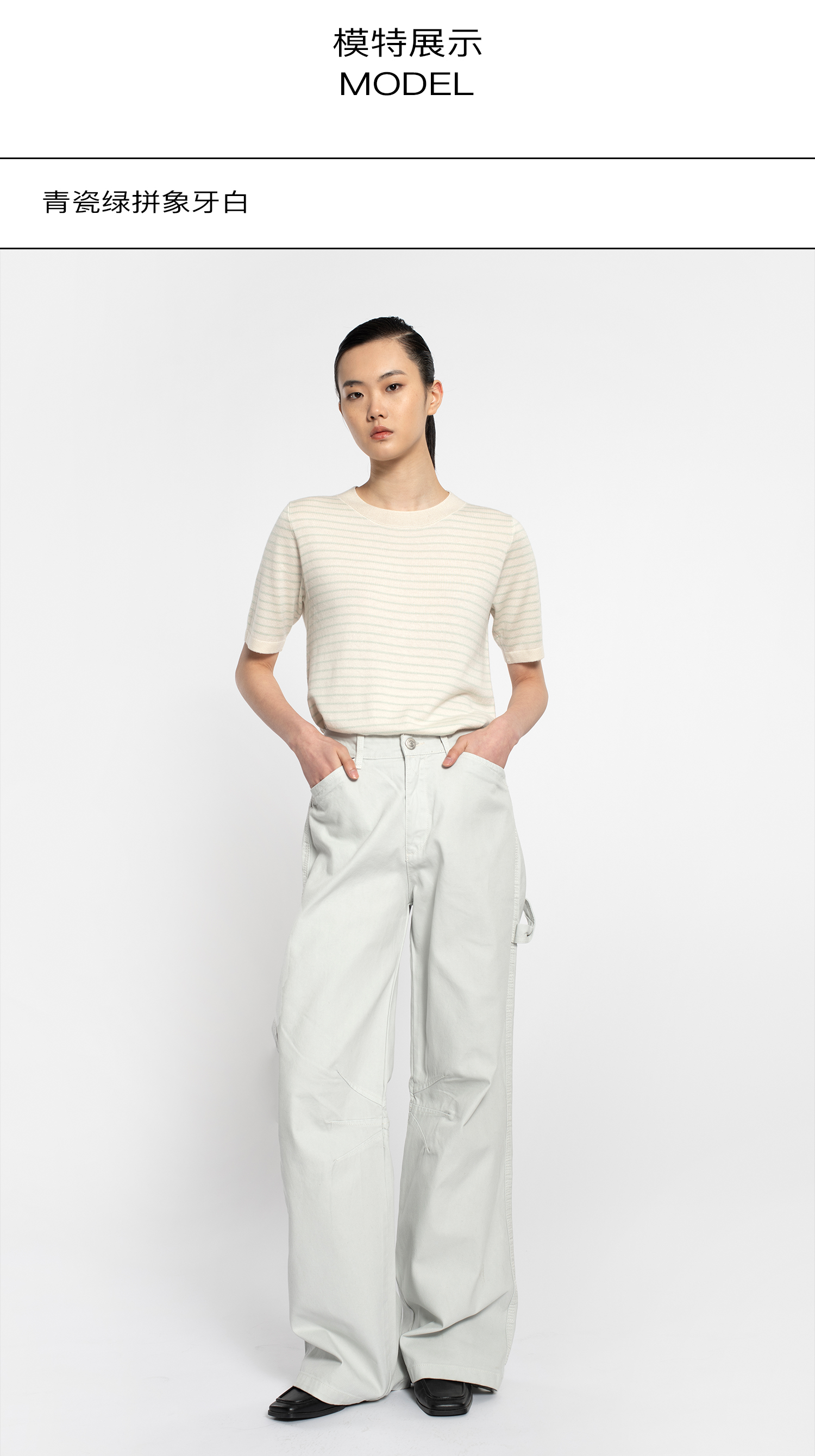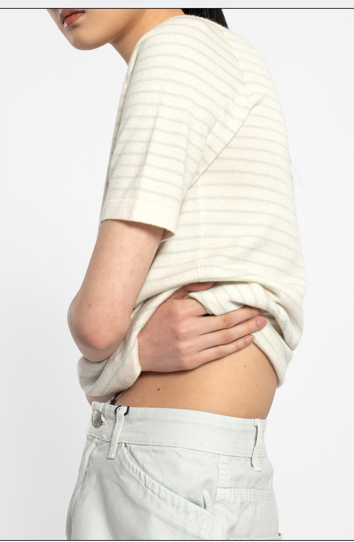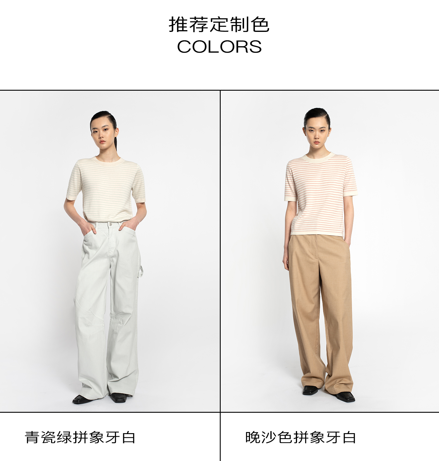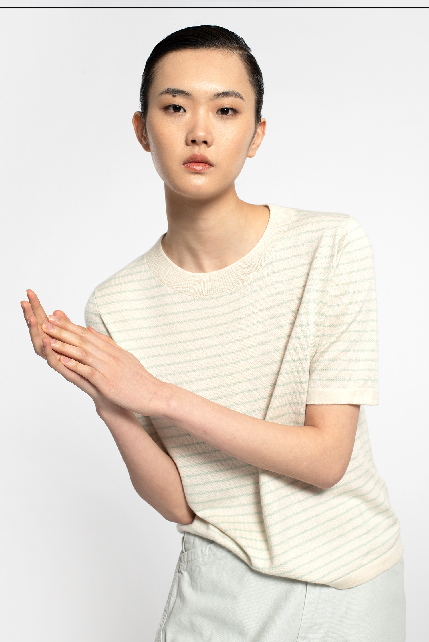女士2022新款16针虚线纹理丝羊绒条纹针织T恤