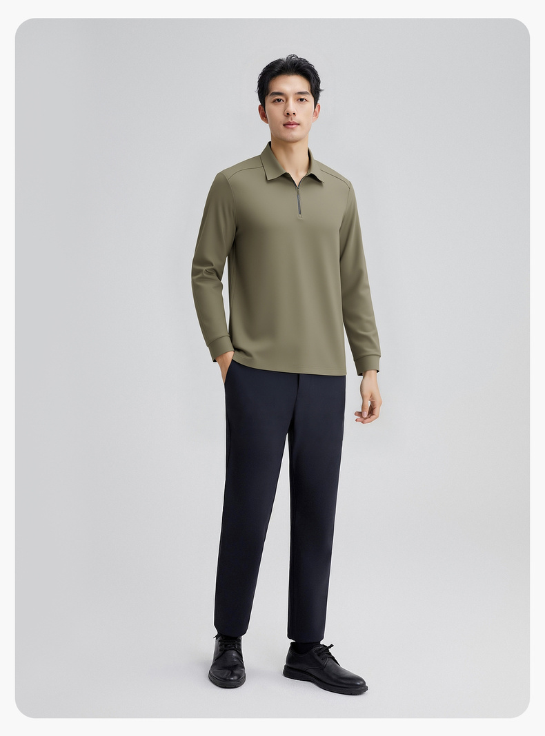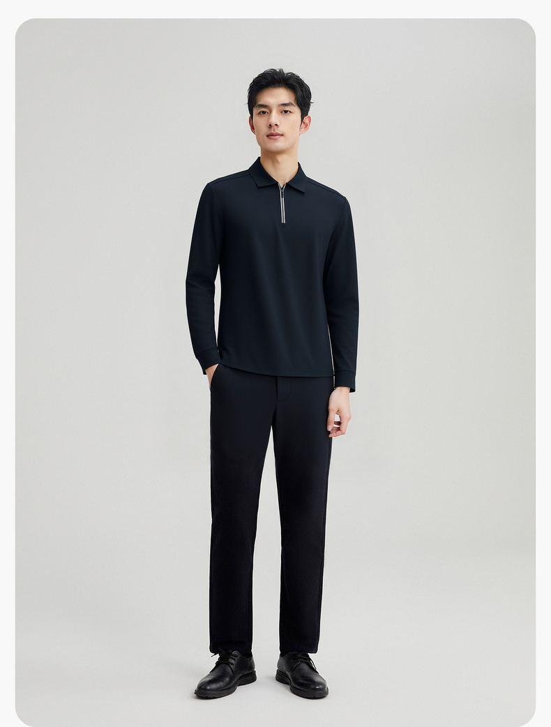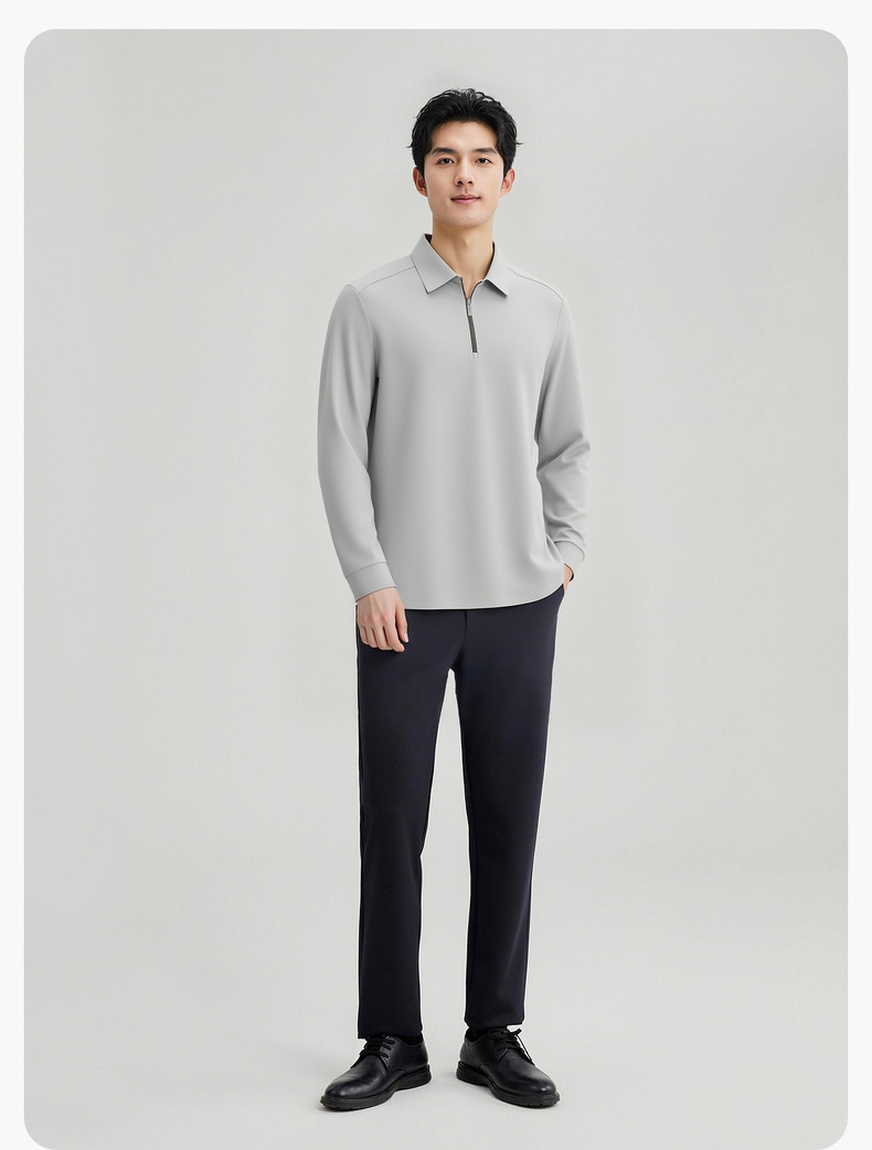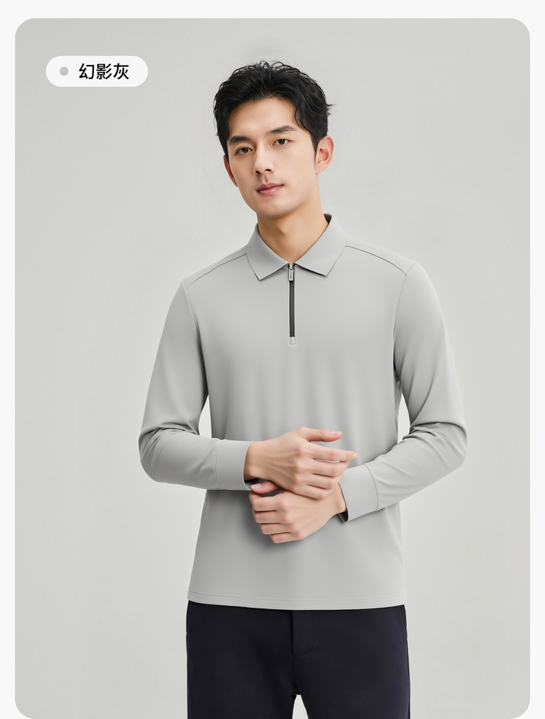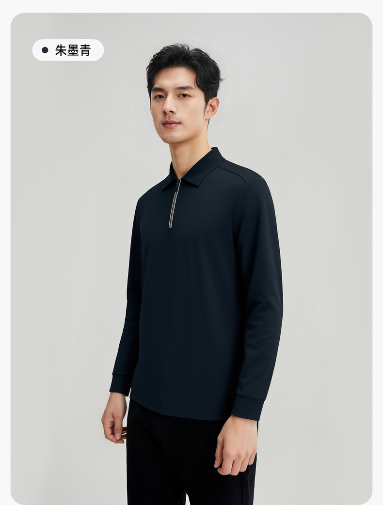 【含桑蚕丝】圣得西秋款男士撞色翻领长袖polo衫T恤衫2412945112