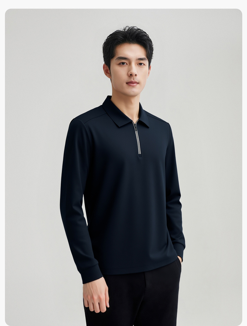 【抑菌&抗静电】圣得西男士高弹卫衣2025秋新款拉链翻领针织上衣