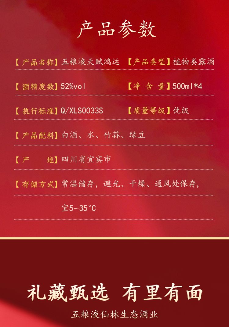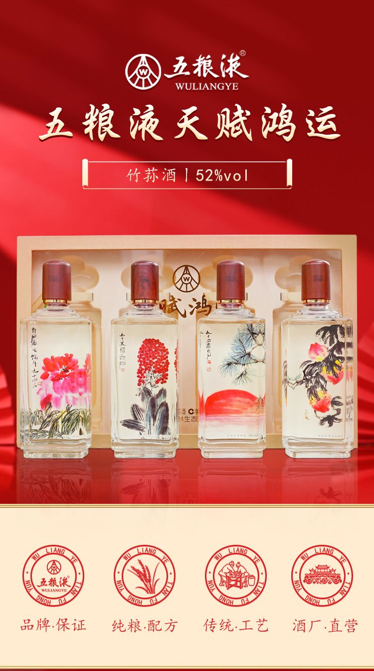 五粮液主产区 天赋鸿运祖国颂优级竹荪酒500ml*4瓶礼盒装【不支持七天无理由退换】-FF