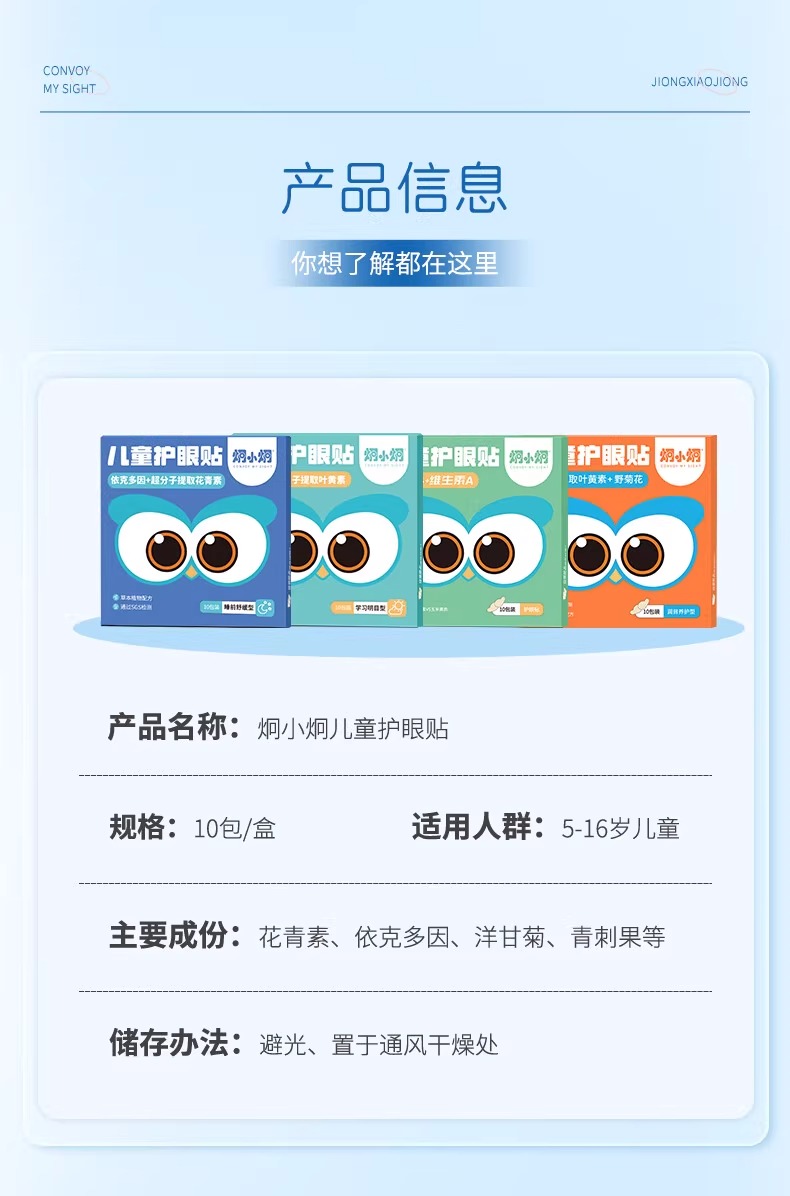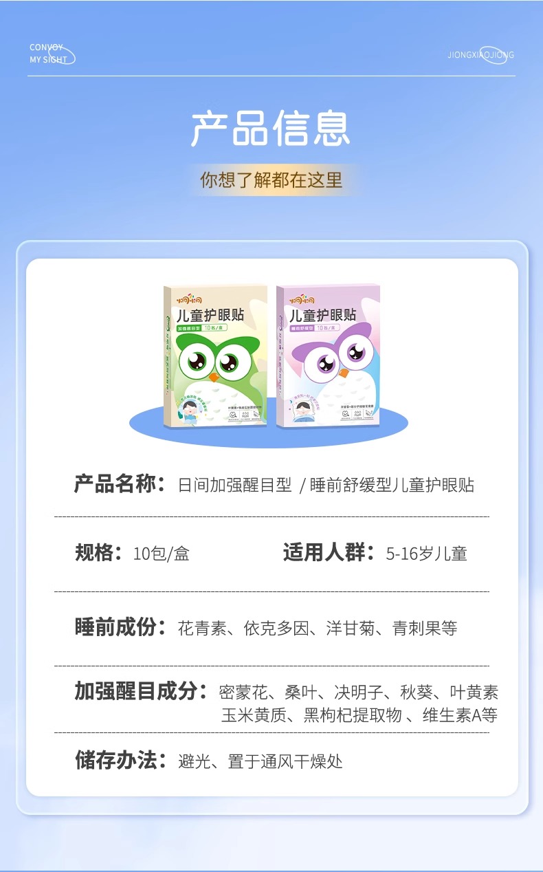 福利!全新包装【每盒20贴赠送6贴同款眼贴】炯小炯缓解儿童眼疲劳护眼贴叶黄素花青素近视成人学生改善视力贴