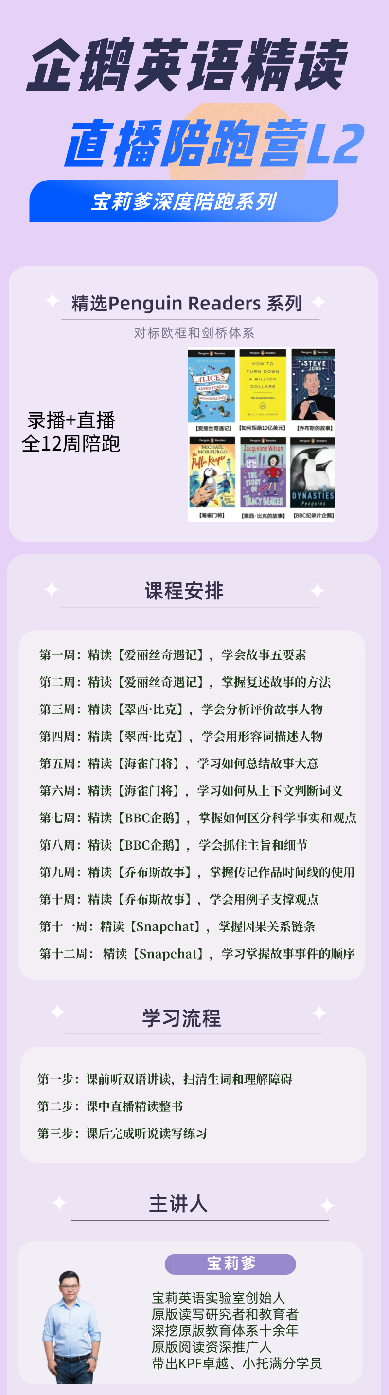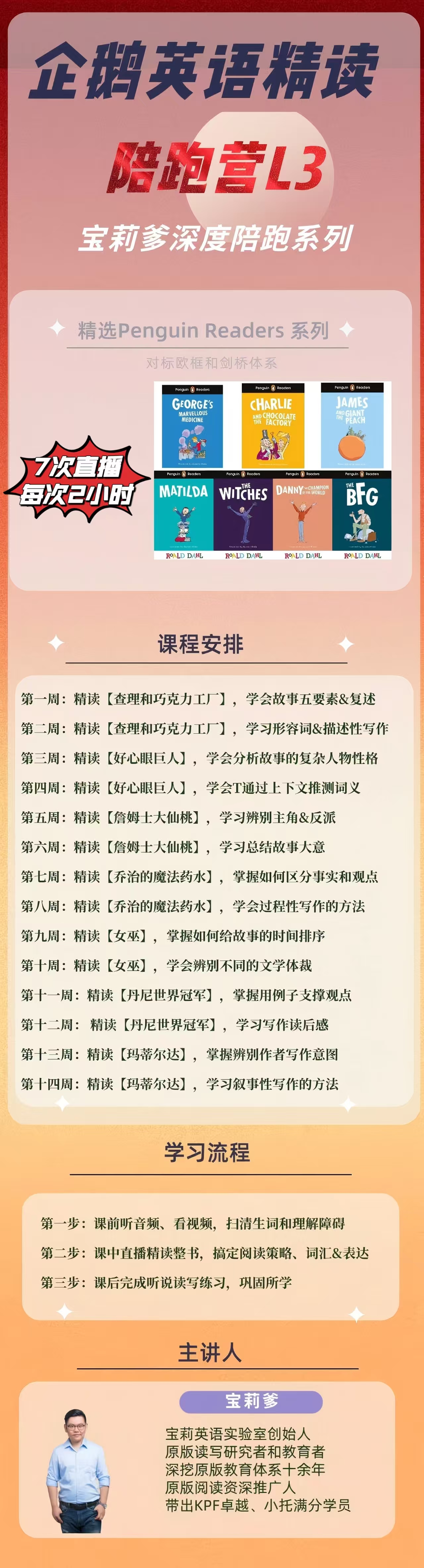 企鹅英语精读陪跑营Level 2 & L3 (含直播课+作业批改+补充材料)【罗尔德·达尔3阶暑期营&企鹅精读2阶秋季营】