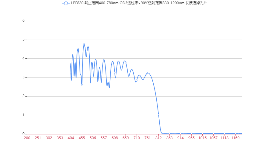 LPF800 长波通滤光片 截止波长200-782nm 透过范围810-1090 OD6 透过率90