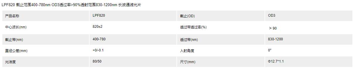 LPF820 OD3 HT90 长波通滤光片