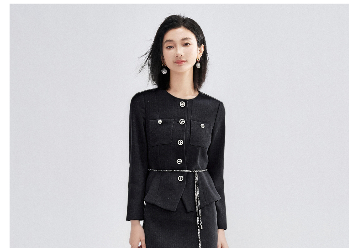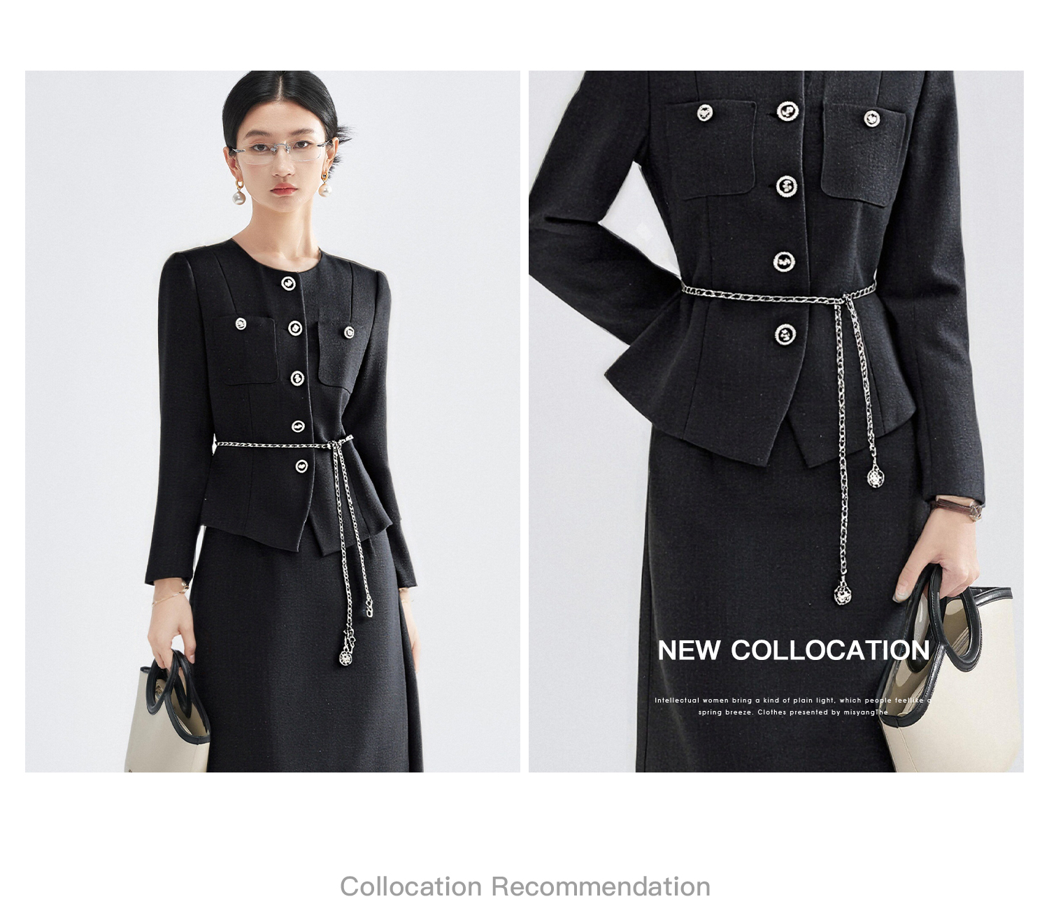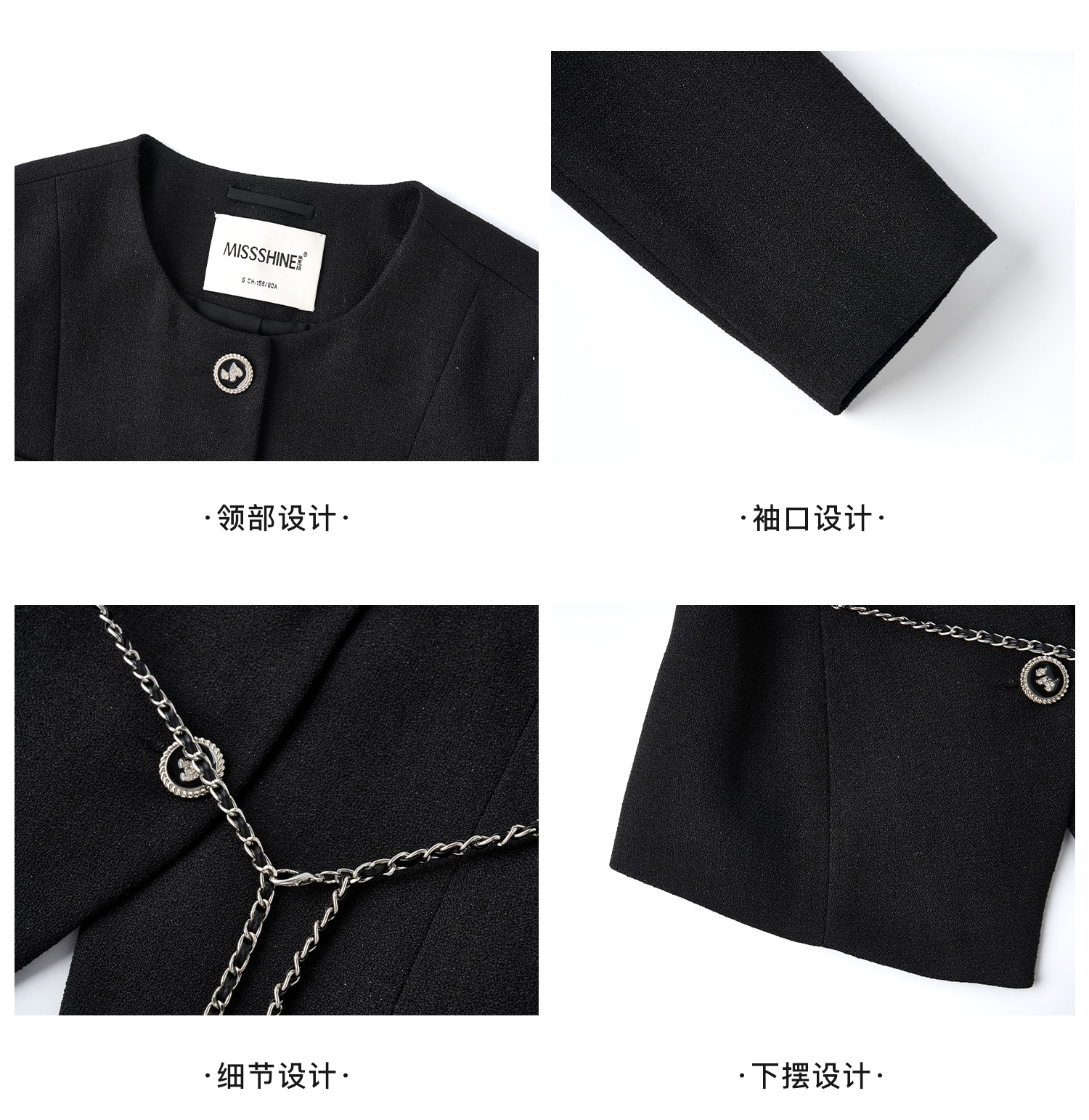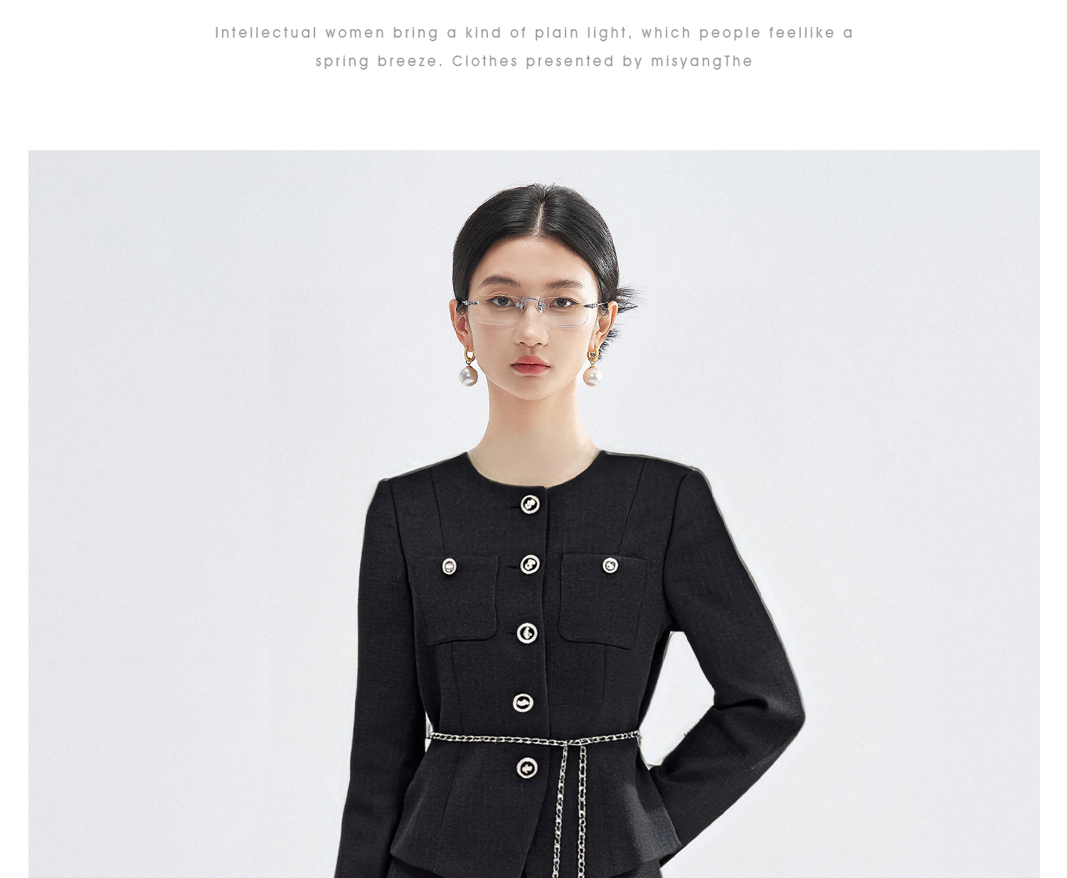米思阳2026春季法式小香风黑色短外套女长袖显瘦高级感上衣高腰直筒半身裙女4476