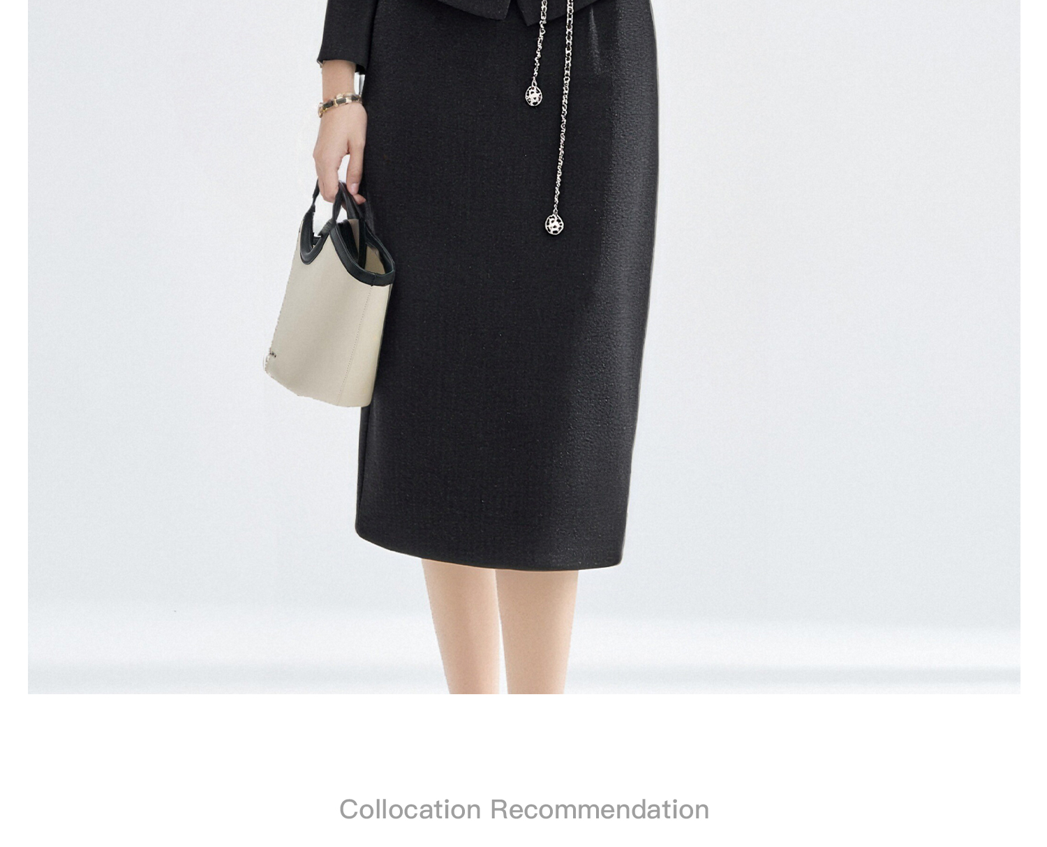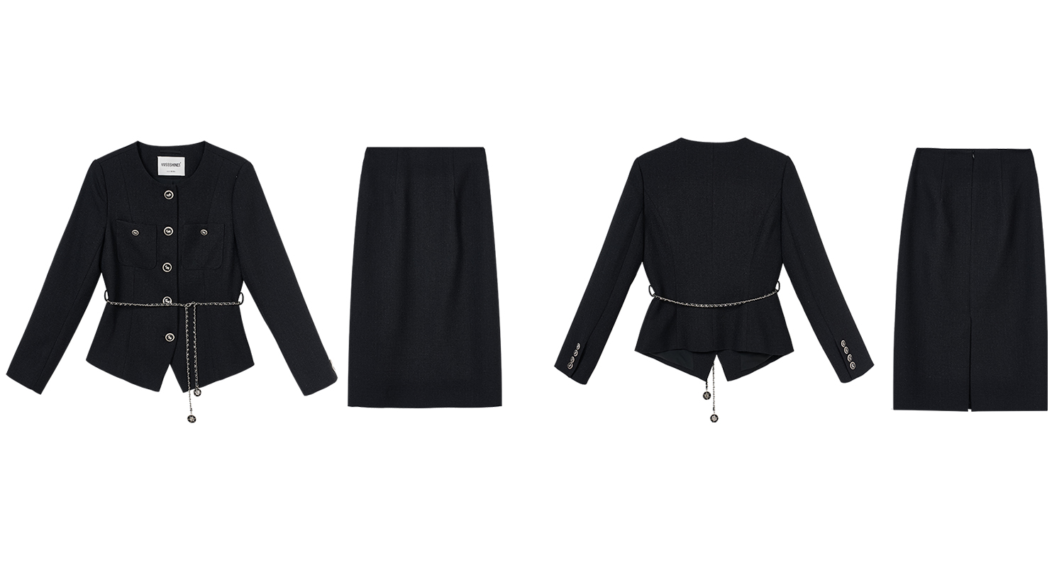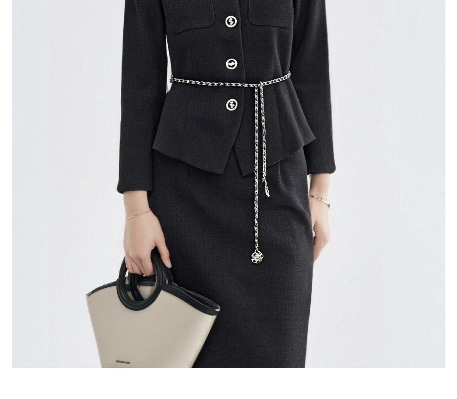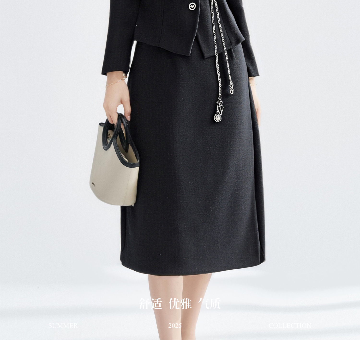 米思阳2026春季法式小香风黑色短外套女长袖显瘦高级感上衣高腰直筒半身裙女4476