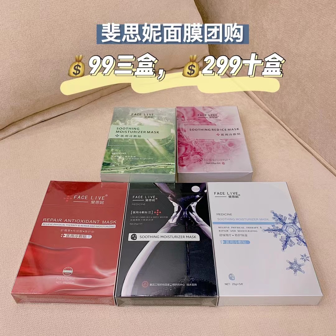 Facelive/斐思妮合集 绿膜 / 灯泡膜 / 冰膜 / 黑膜 / 蓝膜 舒敏褪红补水保湿面膜修护敏感肌补水 裴思妮菲思妮任选三盒,拍下自动改价99