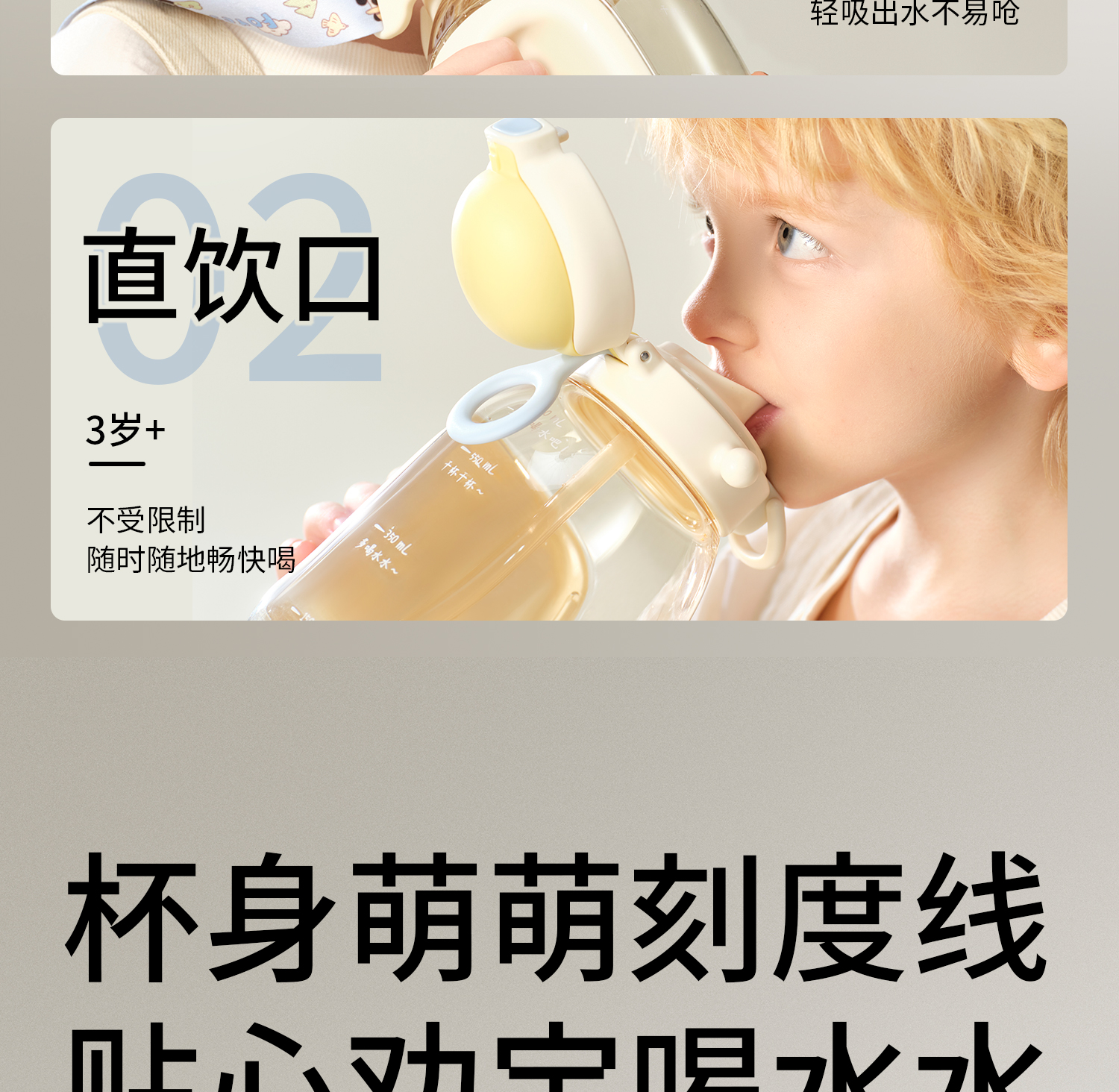 科巢吨吨桶儿童水杯直饮吸管宝宝饮水壶夏幼儿园上学2一9岁ppsu男女孩