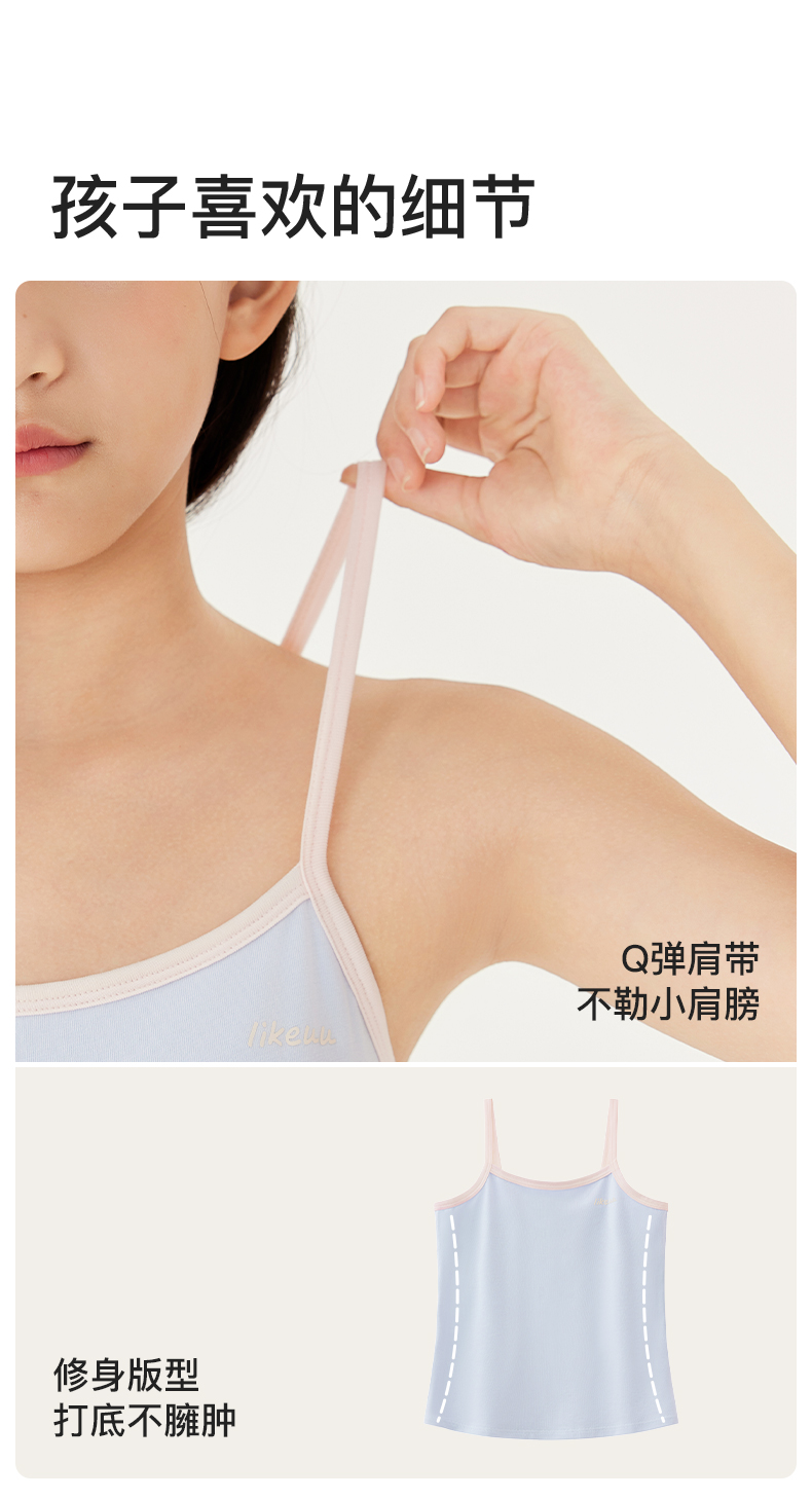 ubras旗下likeuu少女内衣发育期大童启蒙一阶段吊带bra-in小背心(日常I)