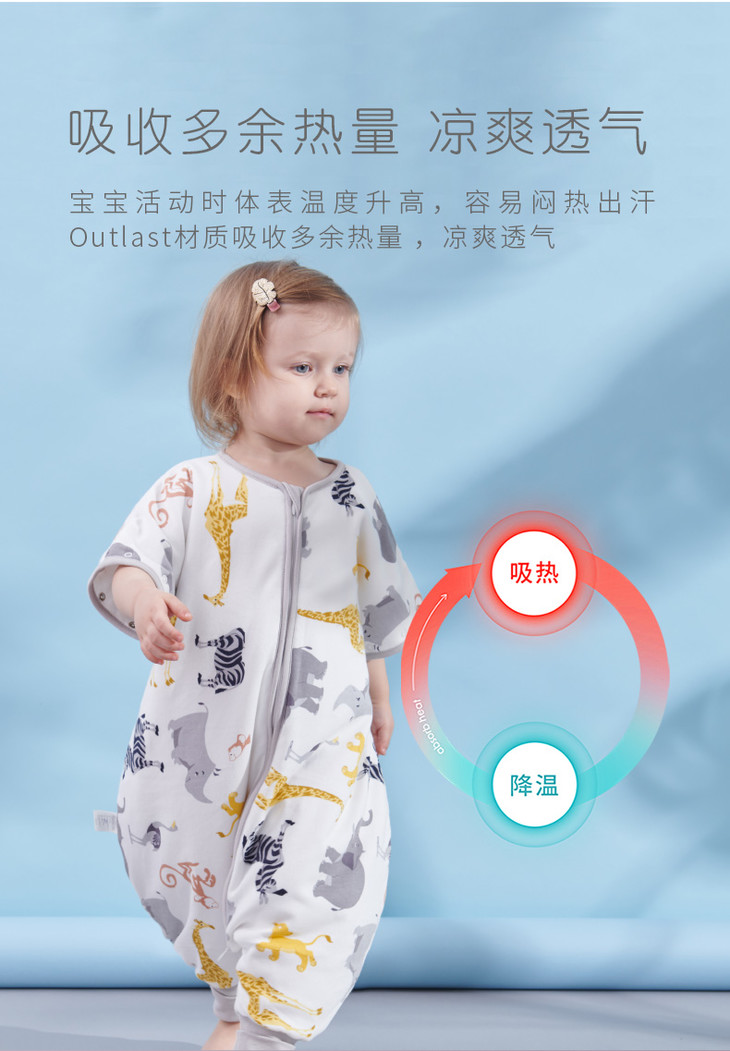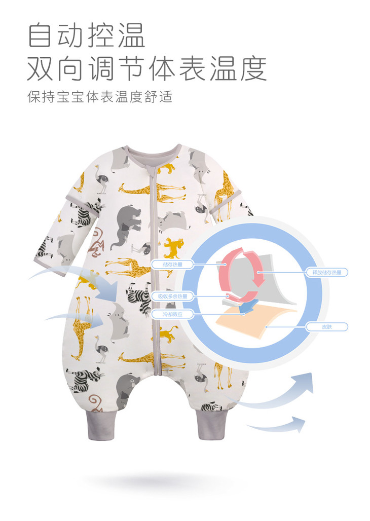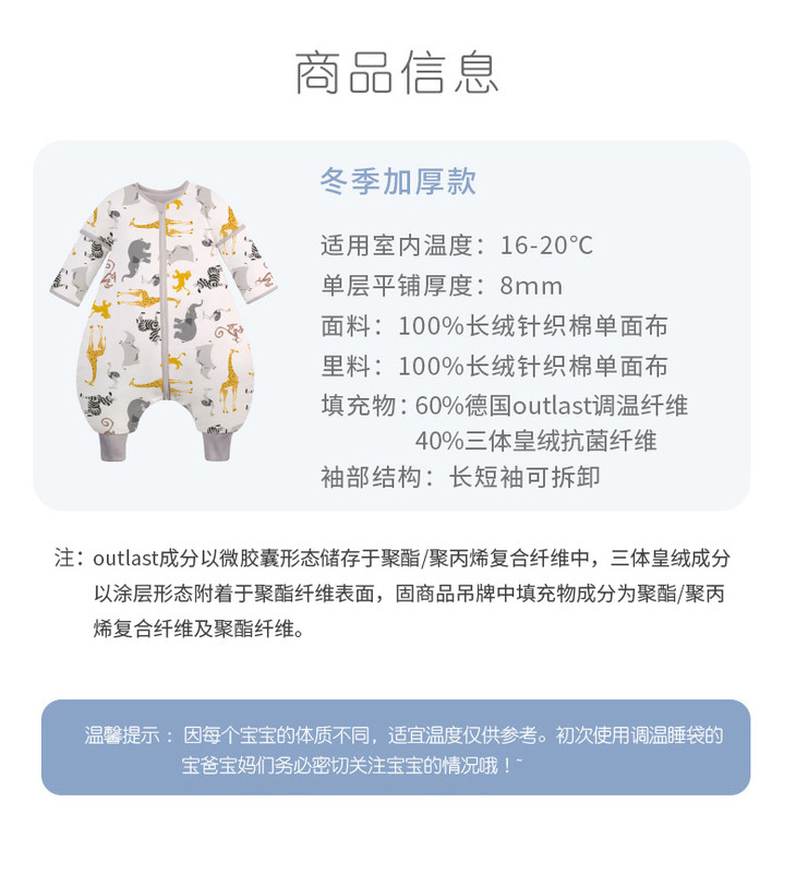 ibaby×outlast太空科技恒温分腿睡袋宝宝防踢被 儿童睡袋秋冬加厚连体睡衣婴儿睡袋