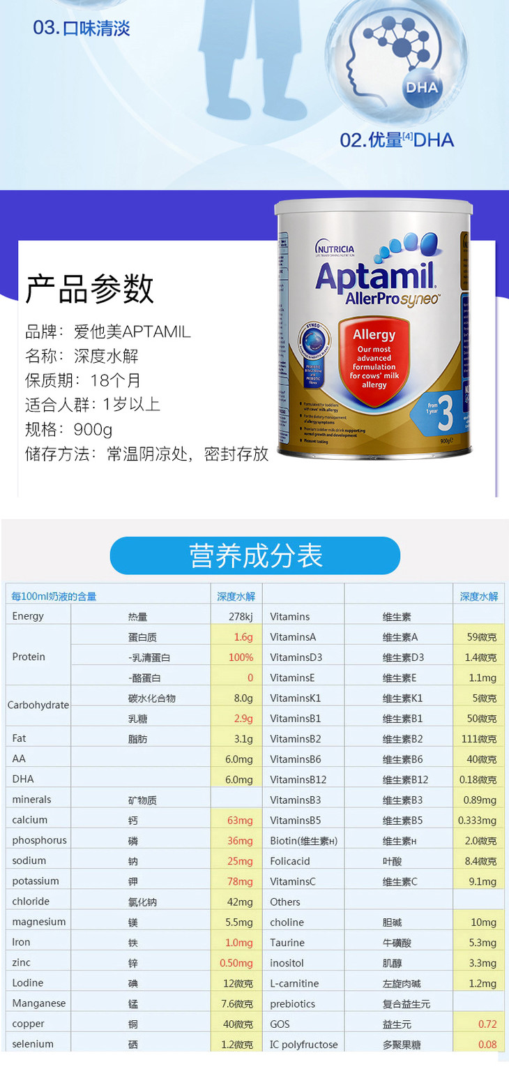 澳洲爱他美3段奶粉深度水解抗过敏湿疹奶粉