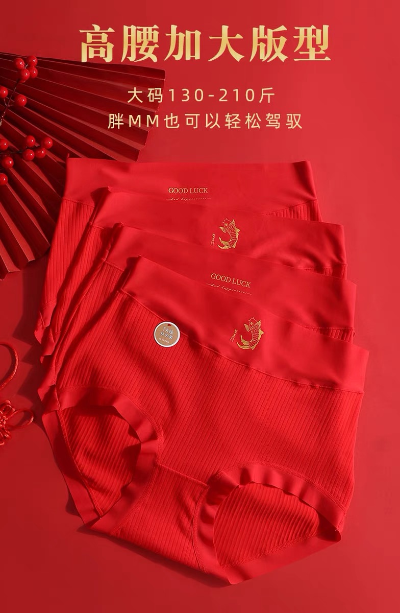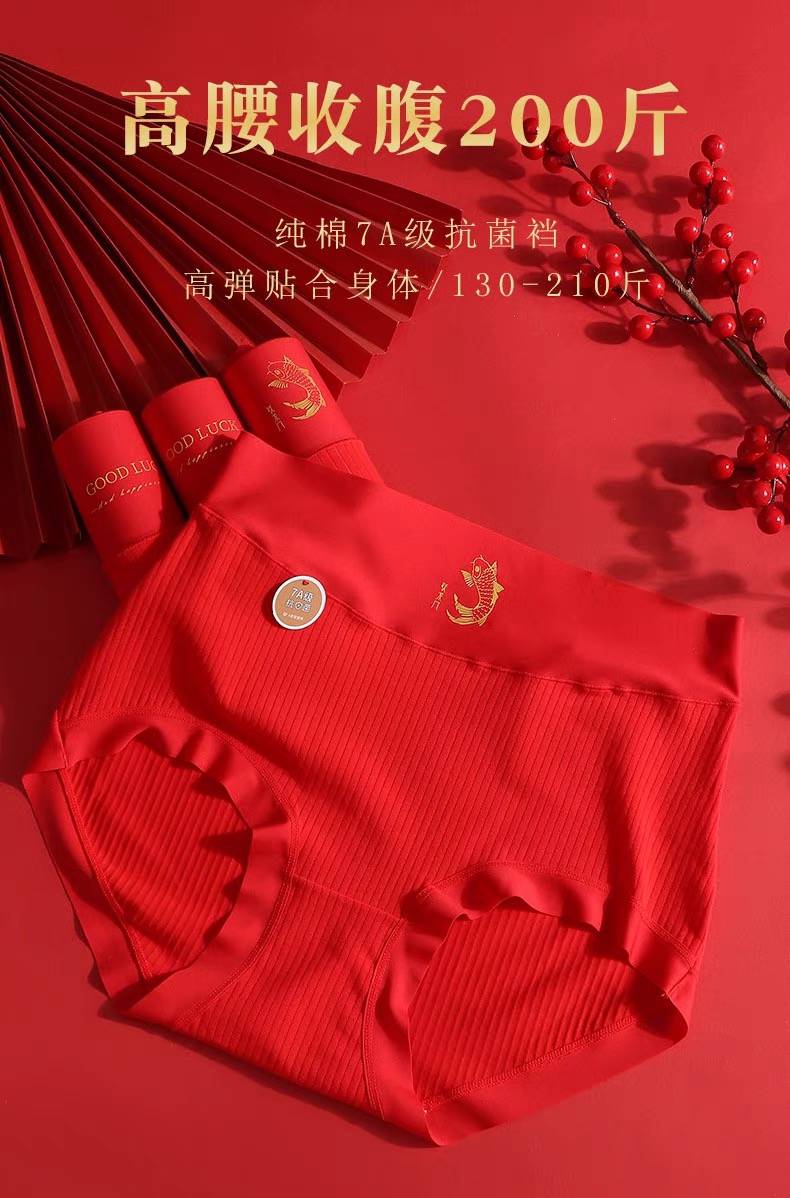 A类婴儿棉 红色内裤 大码纯棉 7A抑菌 本命年新年高腰裤 337#(130斤-210斤)