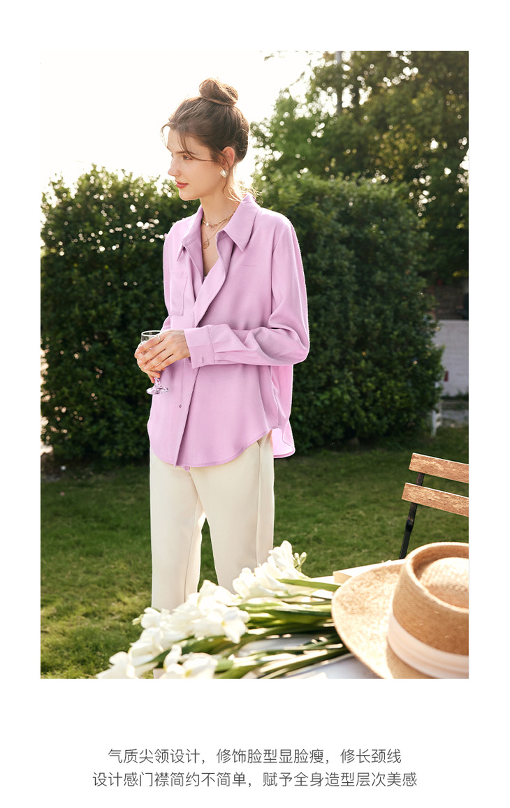 OLrain欧芮儿法式粉色长袖衬衫女春季2023新款宽松慵懒风减龄衬衣