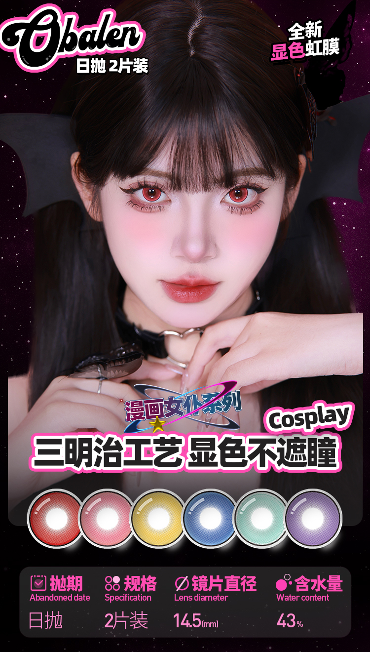 【新品漫画女仆COS系列】Obalen欧巴兰漫展显色隐形近视眼镜日抛2片装