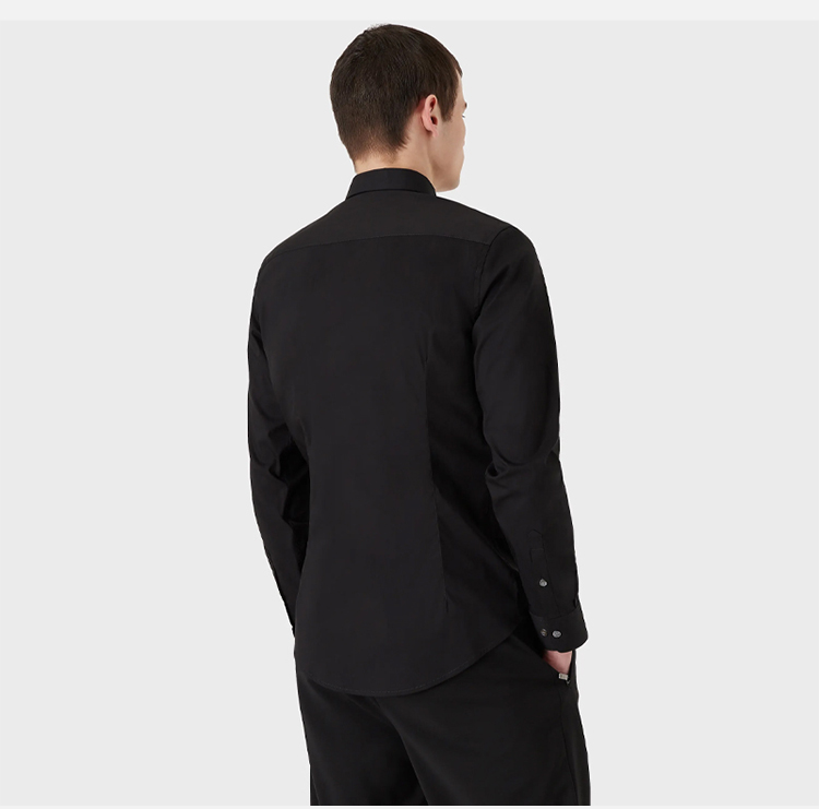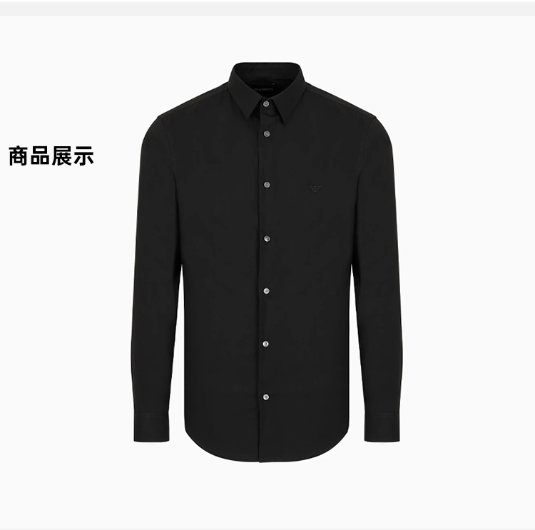 【一】EMPORIO ARMANI 阿玛尼 男士棉质刺绣徽标长袖衬衫 黑色 8N1C09 1NI9Z 0999