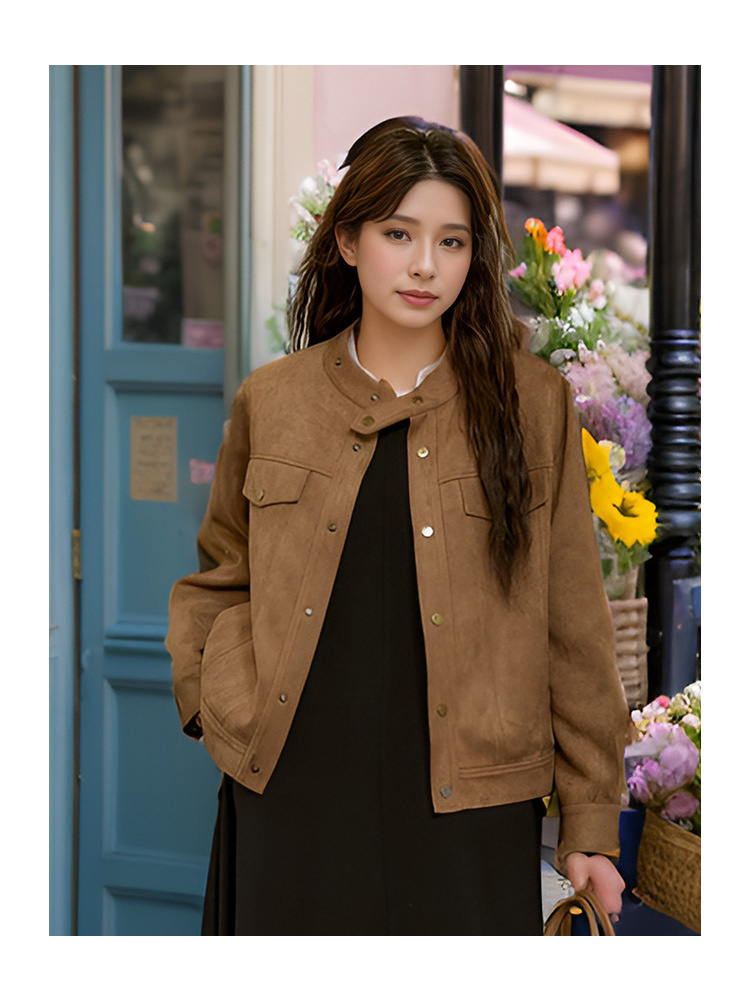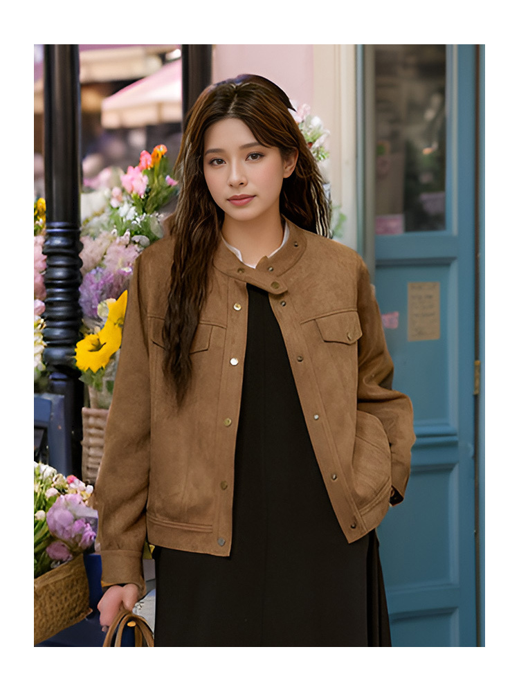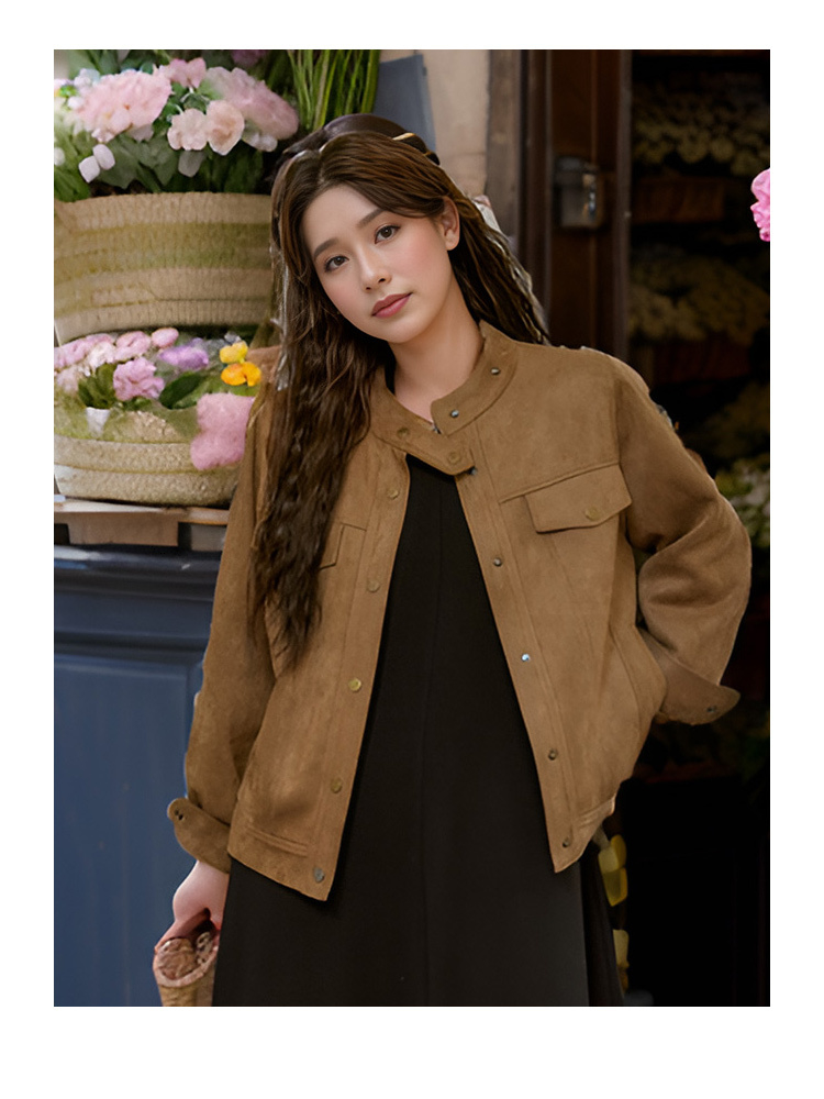 9/4奢姿大码女装2024秋冬复古皮绒小立领胖妹妹时尚百搭简约休闲外套9944326943