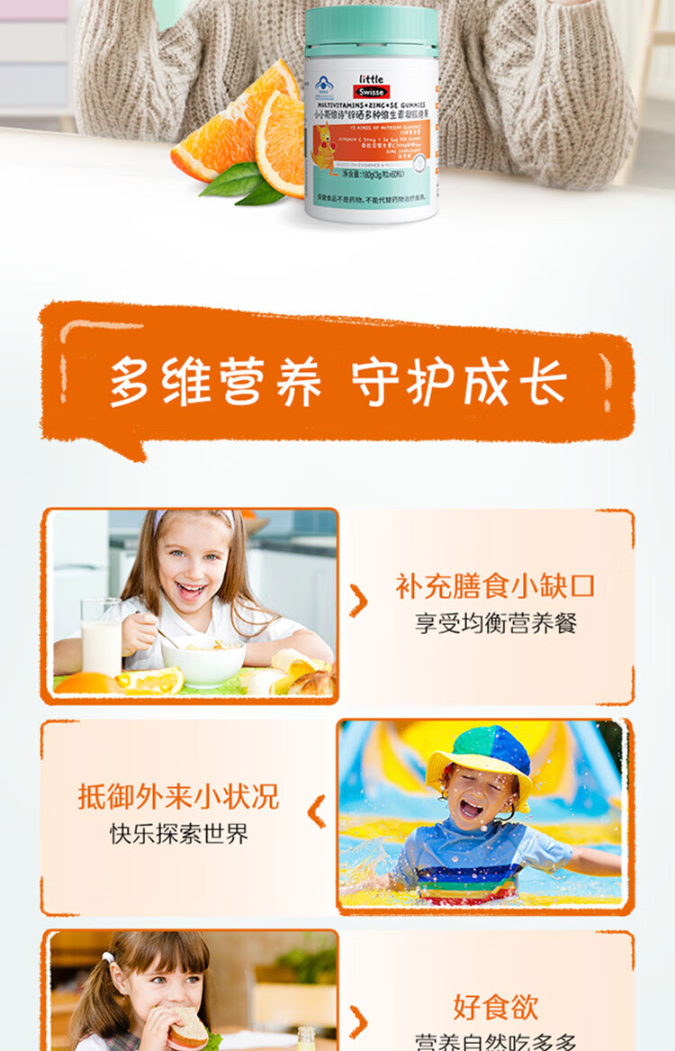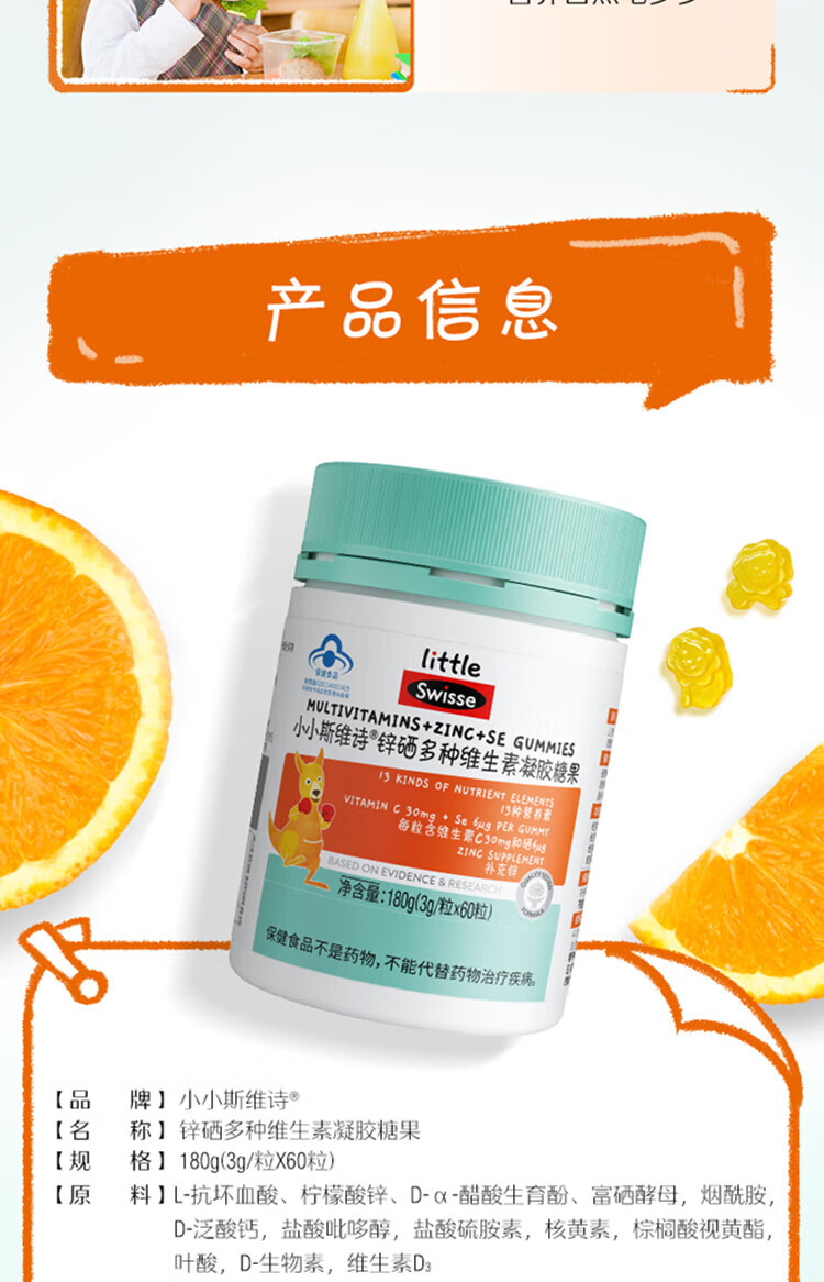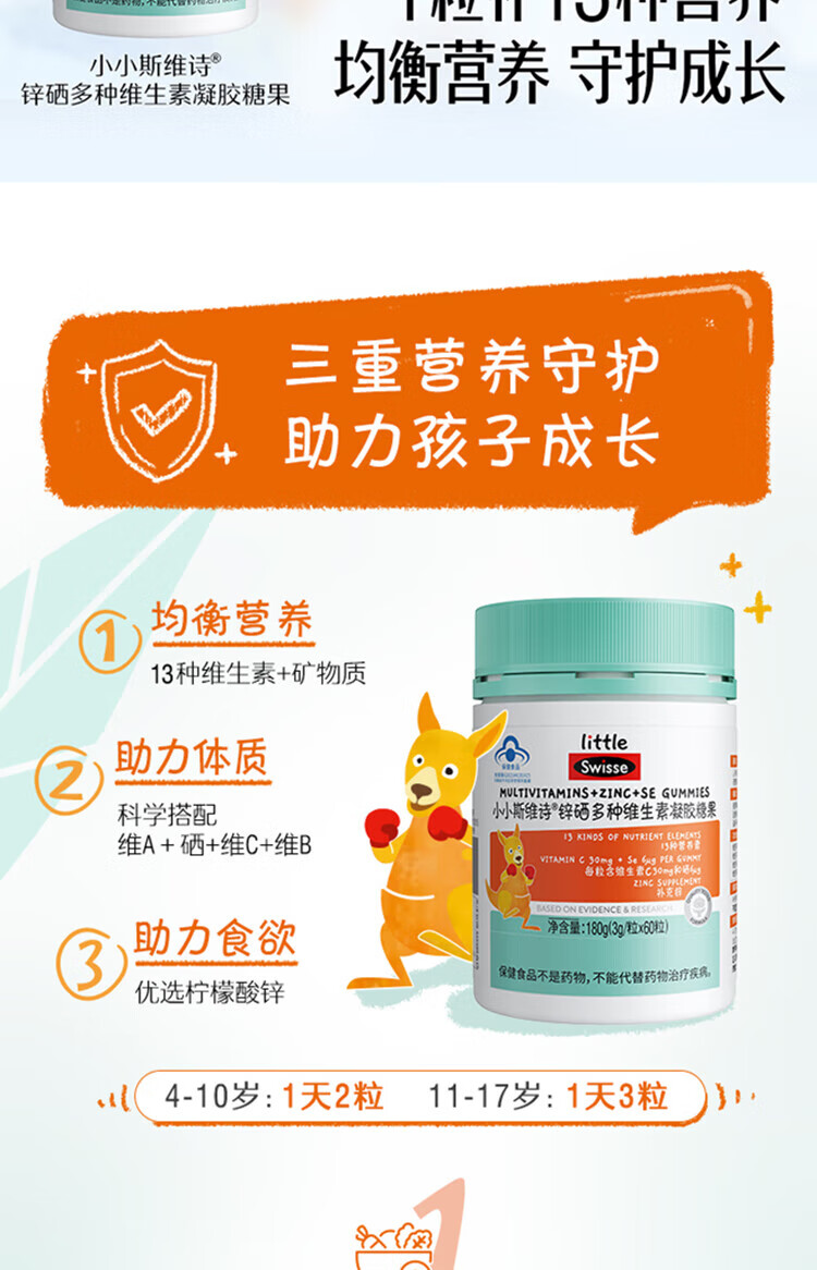 【国内版】Swisse 小小斯维诗锌硒多种维生素凝胶糖果 60粒装 成长添活力