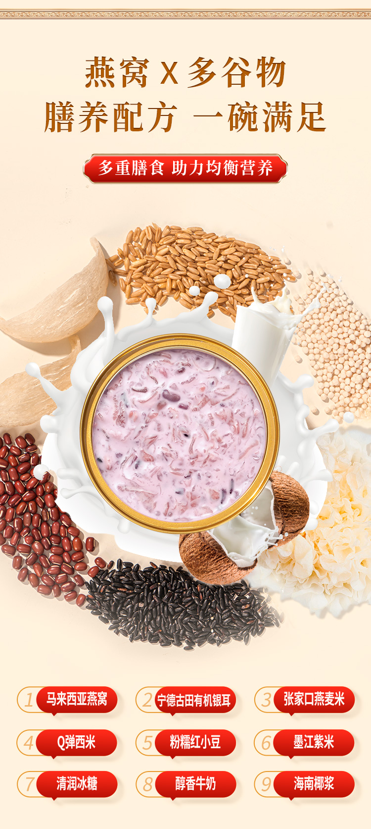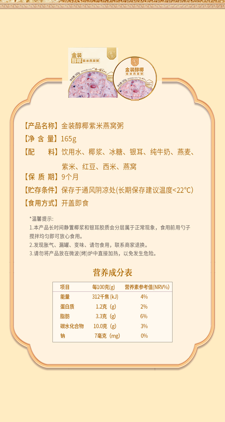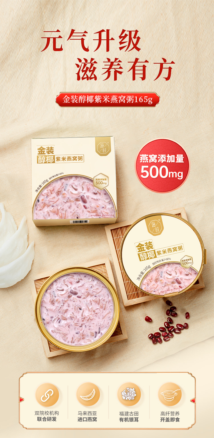 【分仓直发包邮】滋时金装醇椰紫米燕窝粥165g*8碗