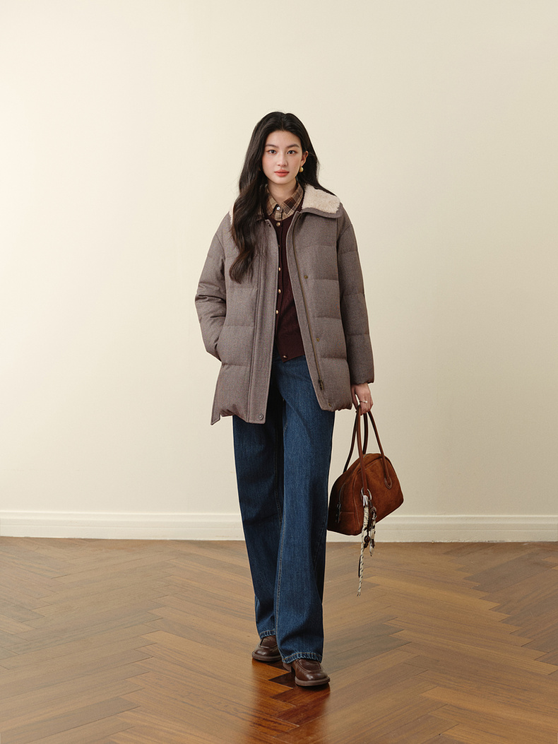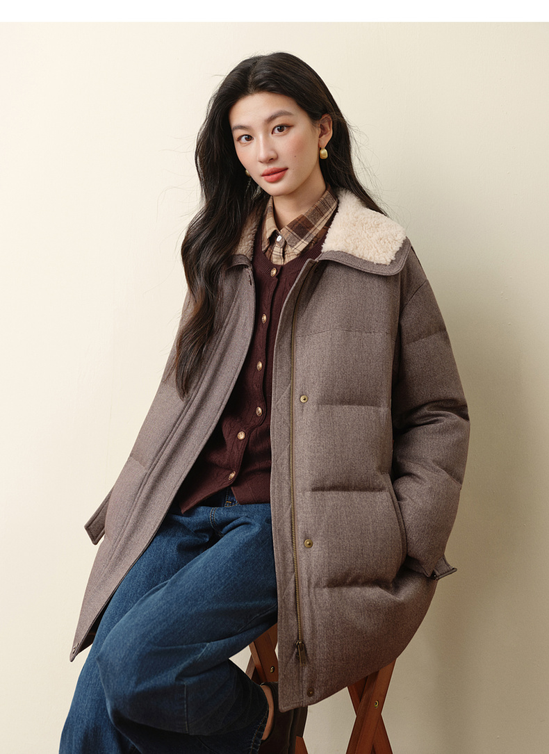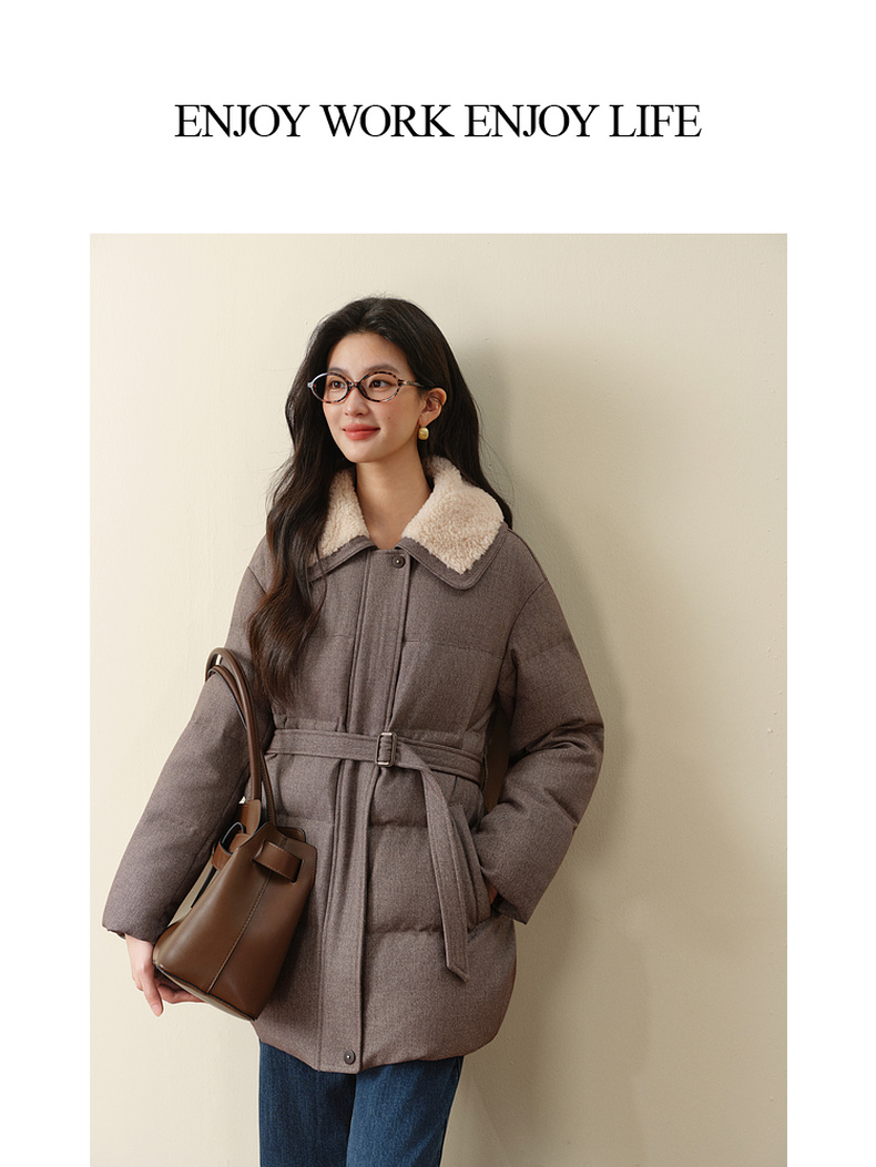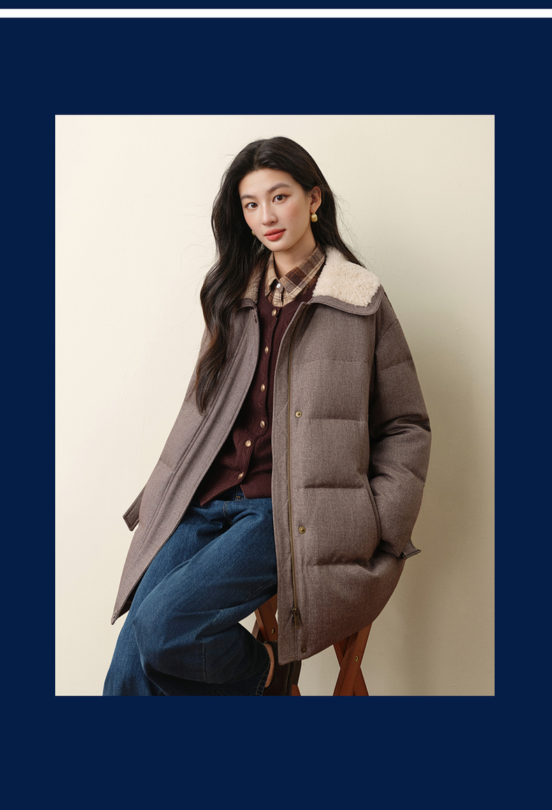 【严选】孟子义代言诗凡黎巴恩风安心羽绒服2025冬新款拼接毛领保暖外套女7GA180031