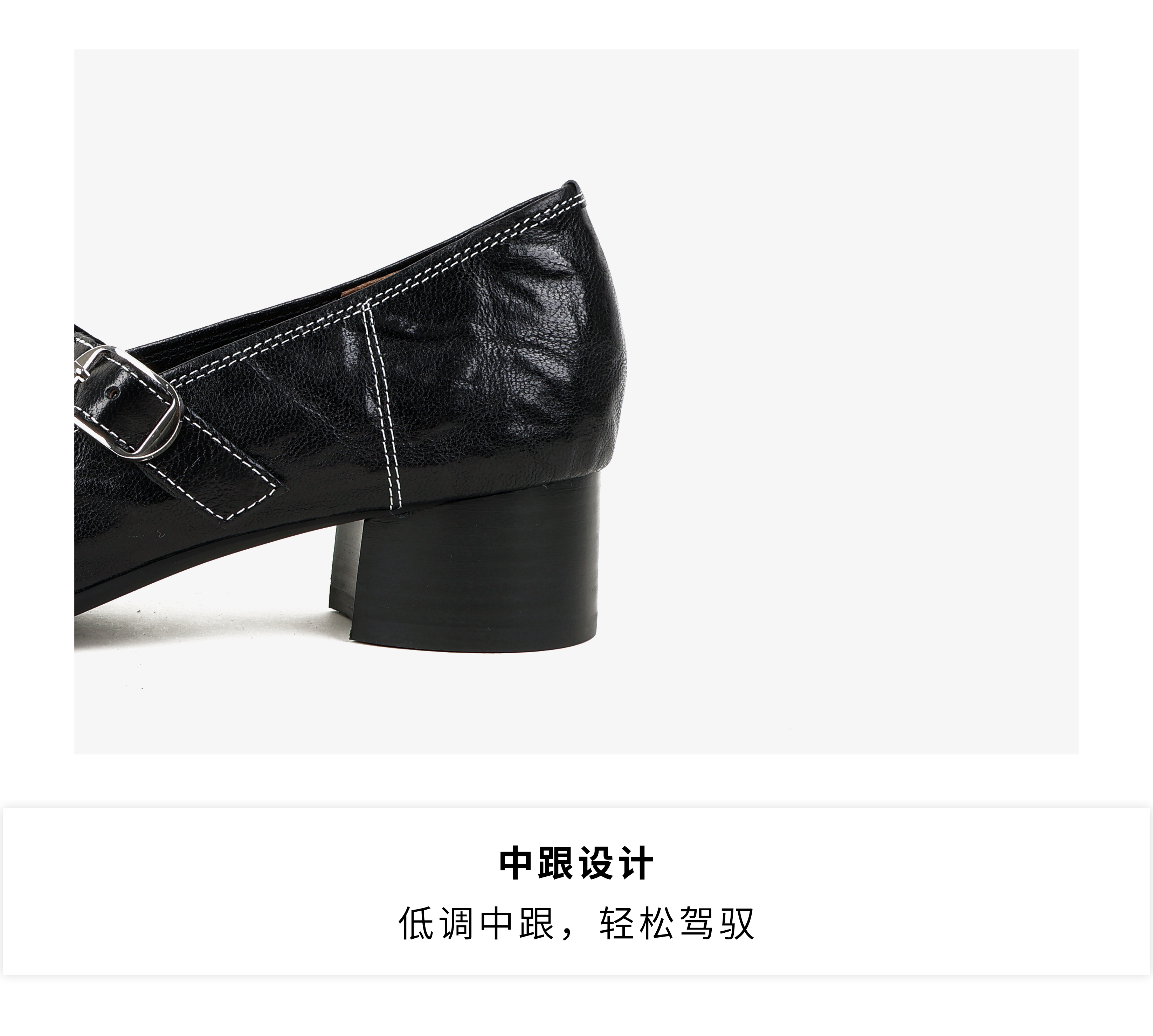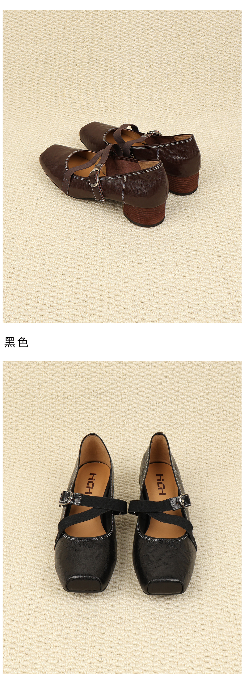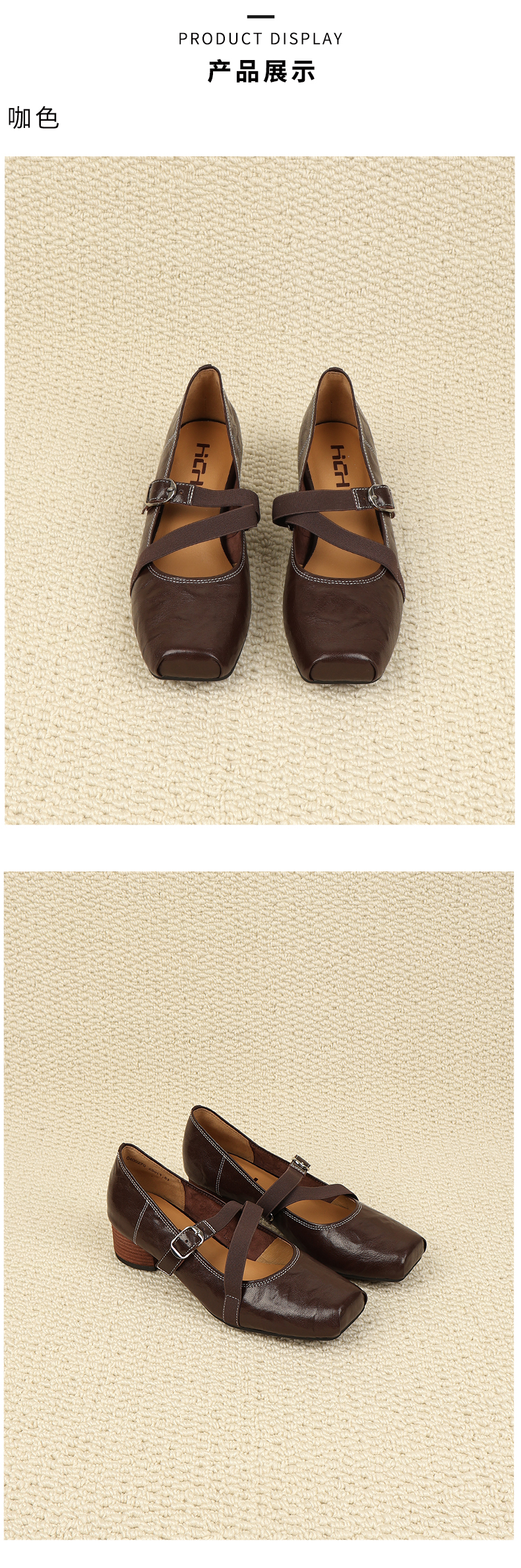 和诚行2026春季新款复古方头玛丽珍鞋女真皮通勤百搭中跟单鞋0400270
