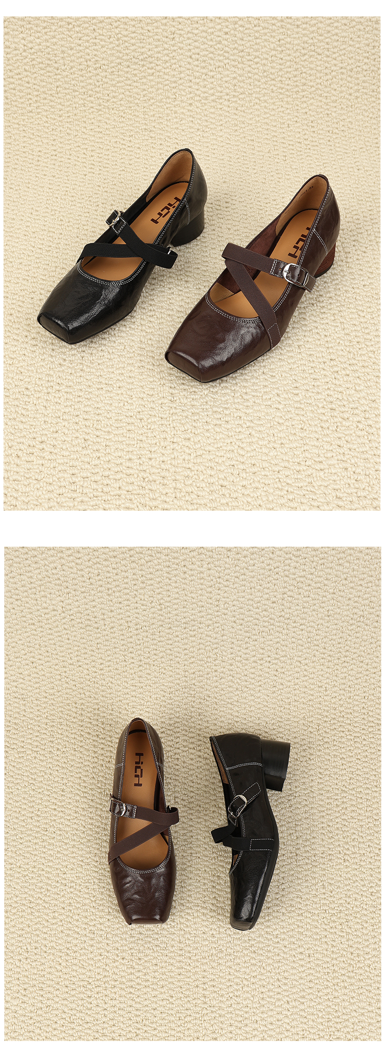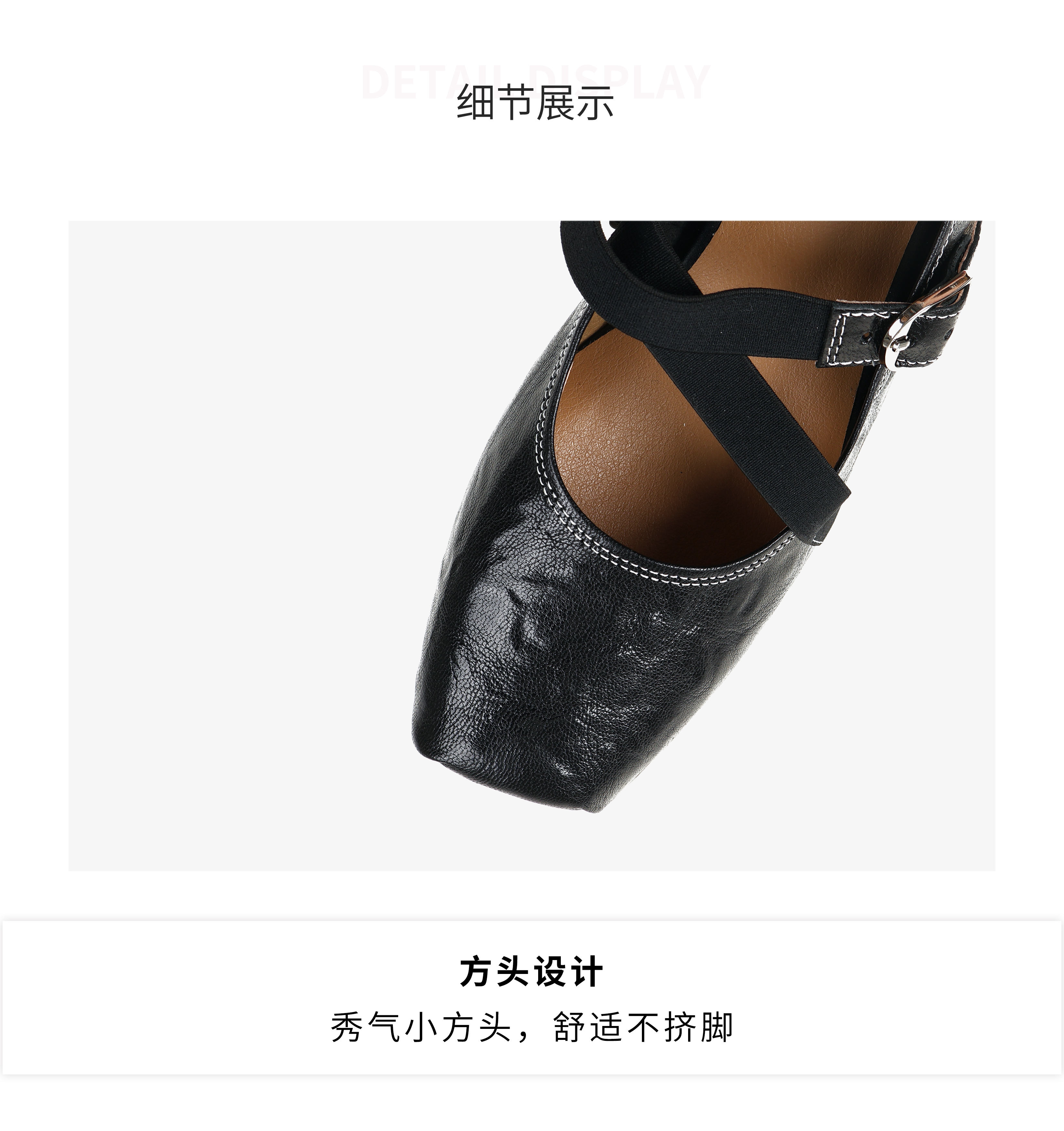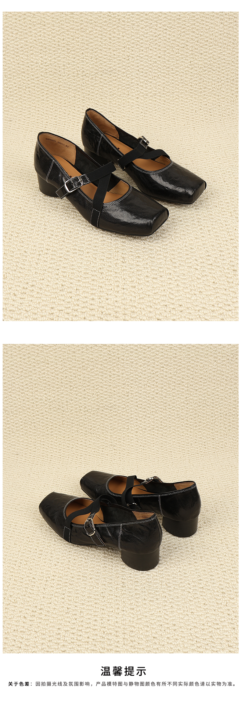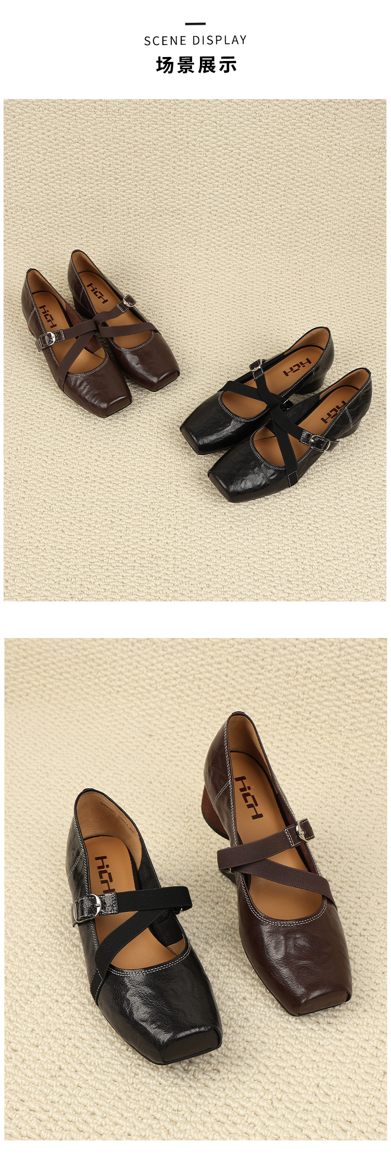 和诚行2026春季新款复古方头玛丽珍鞋女真皮通勤百搭中跟单鞋0400270