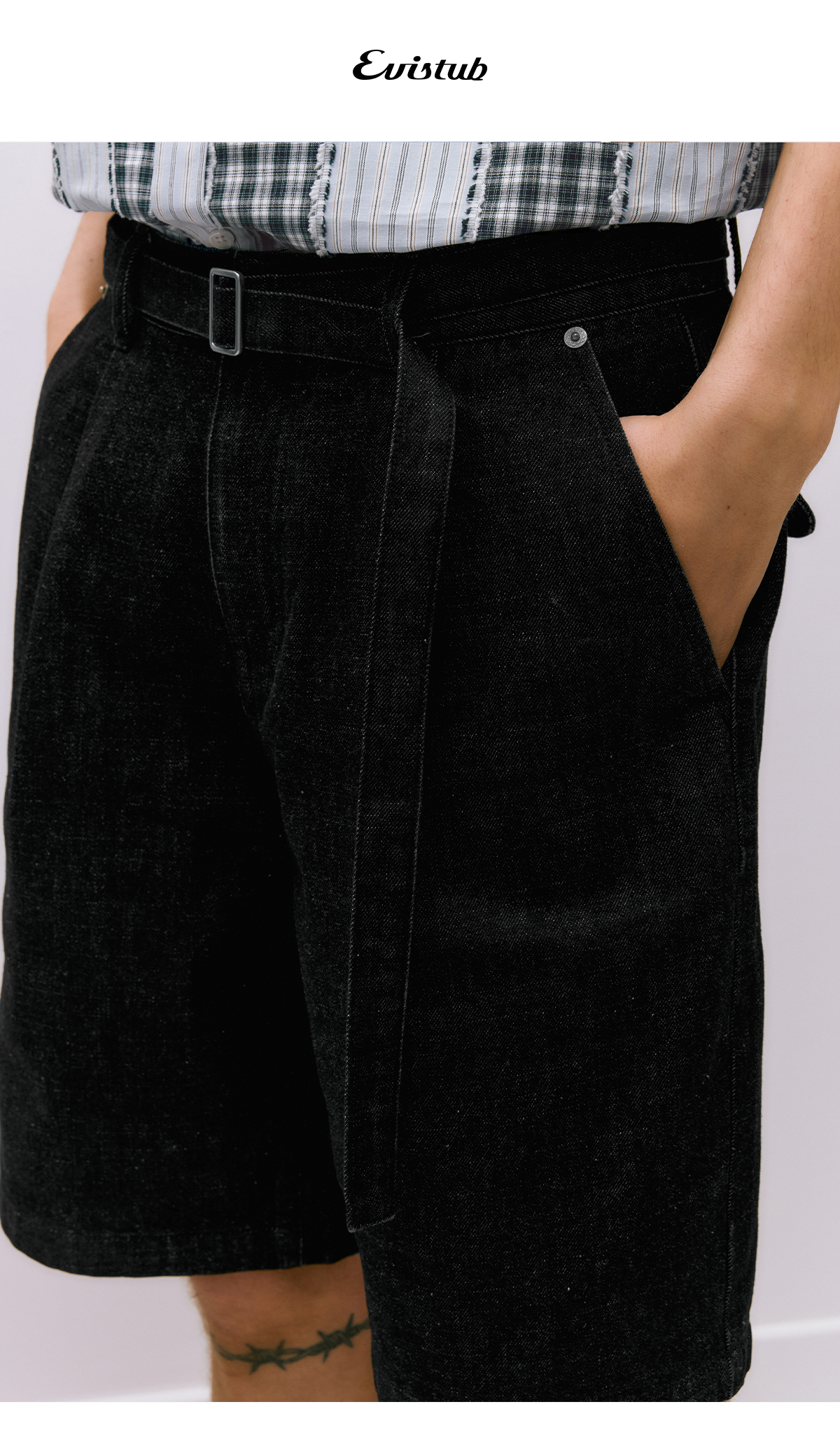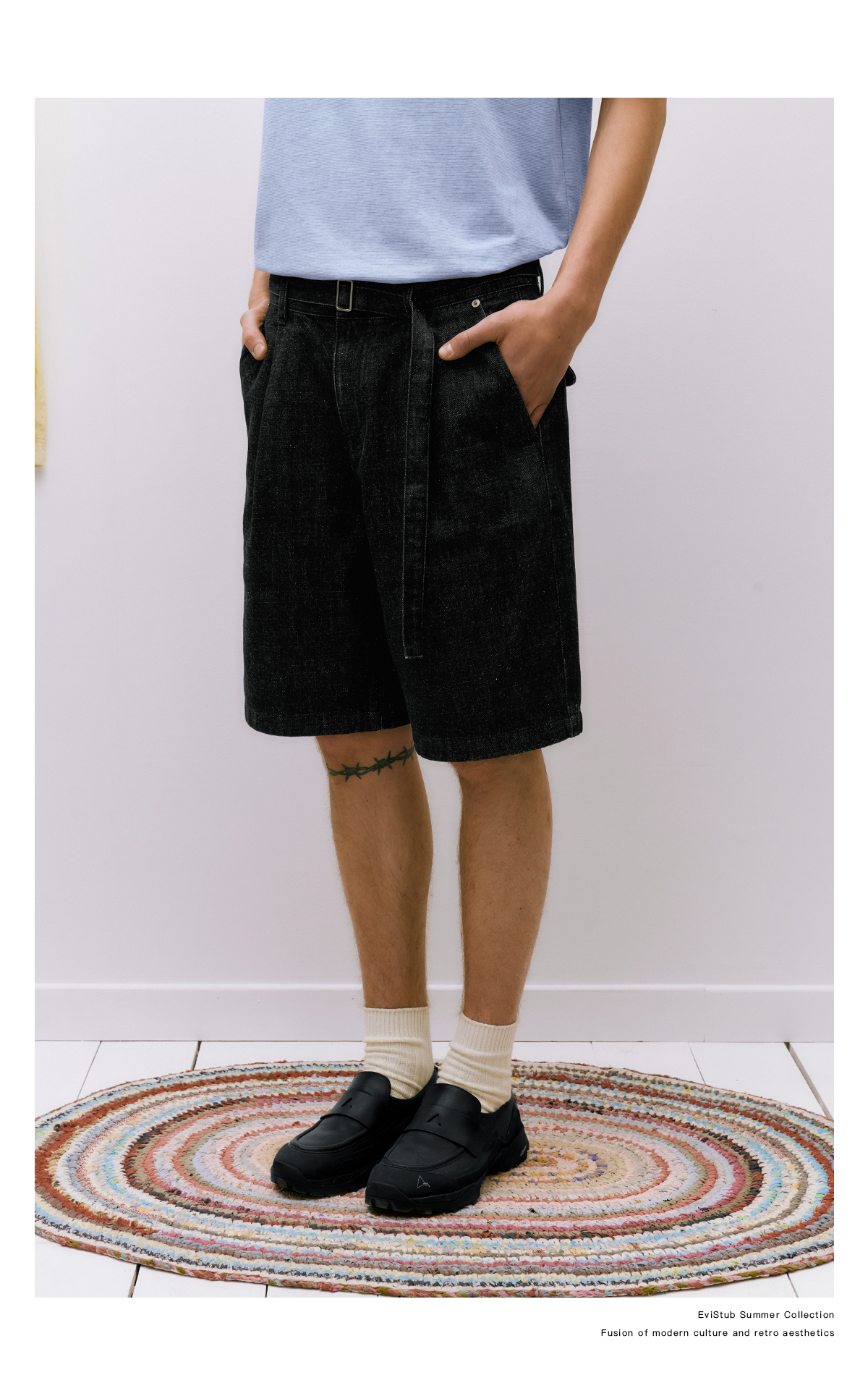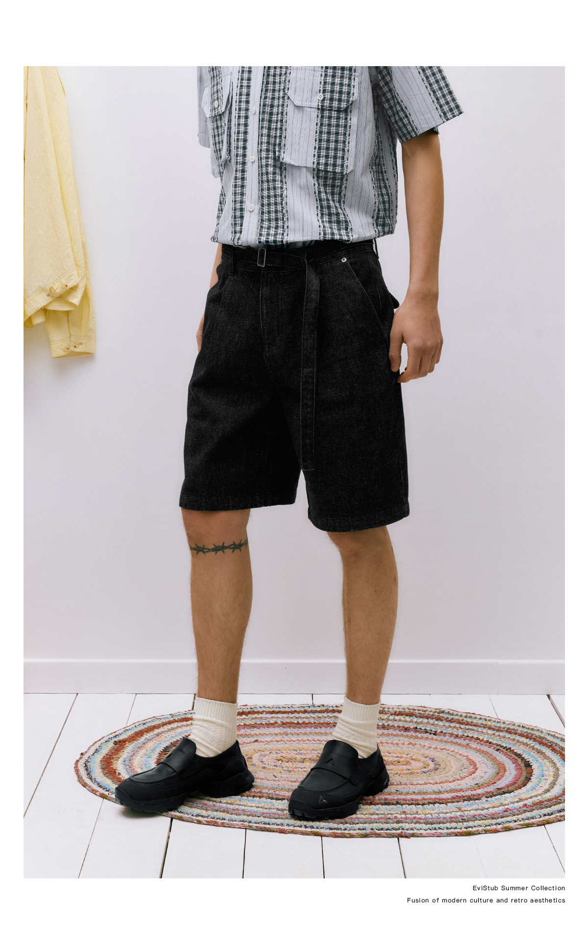 EviStub/E-4XDK225/复古可拆卸腰带水洗牛仔短裤