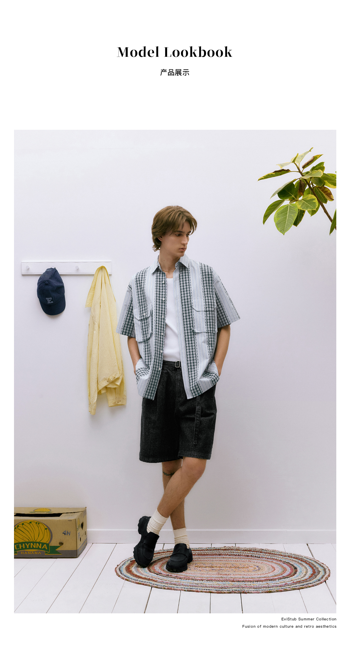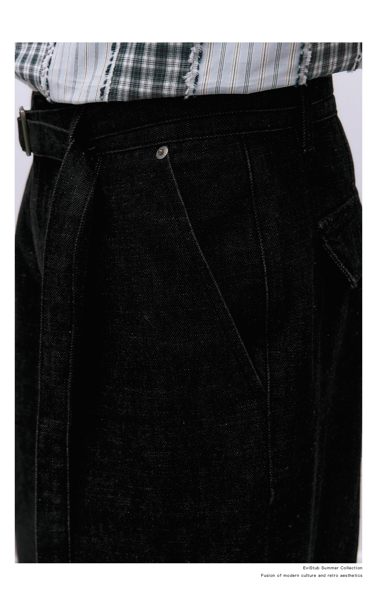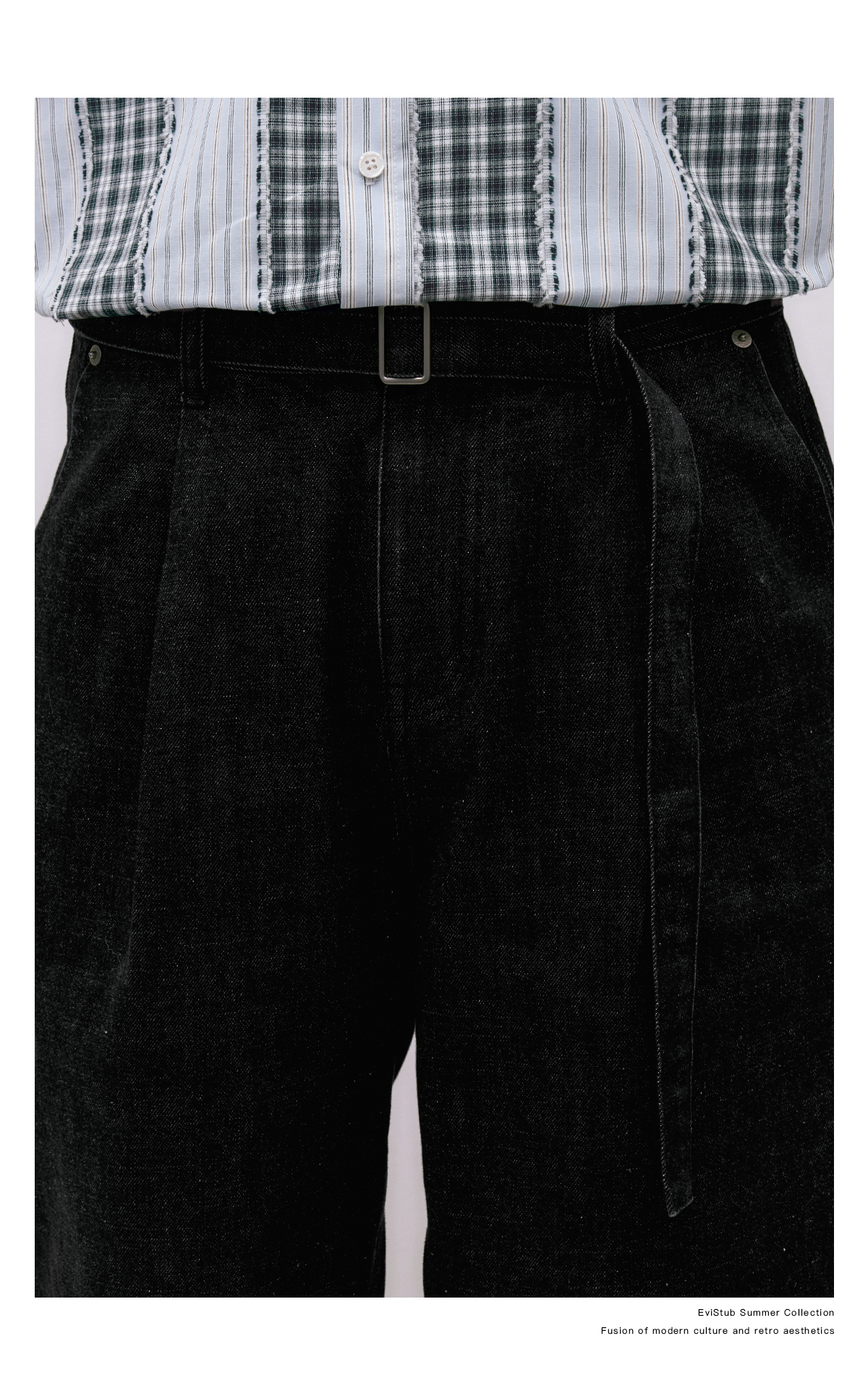 EviStub/E-4XDK225/复古可拆卸腰带水洗牛仔短裤