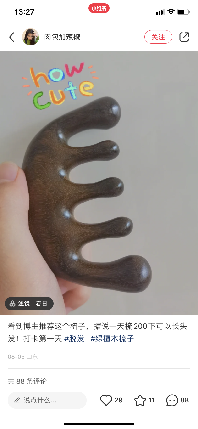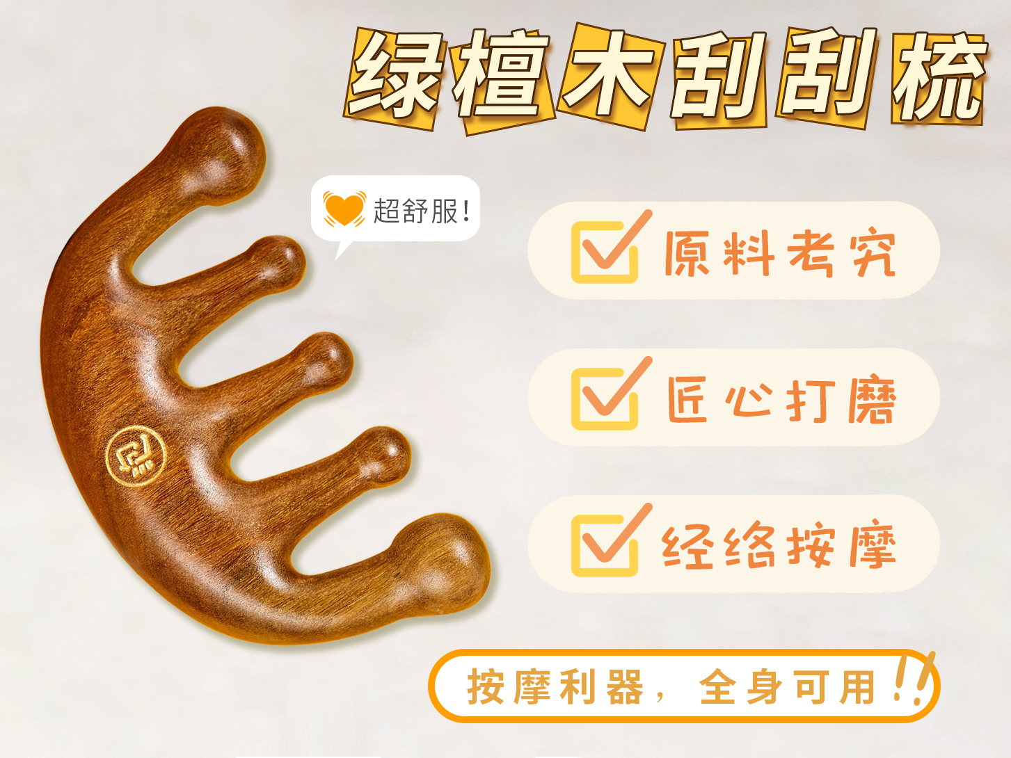 今天就给大家推荐一款全身可用的按摩利器#小灯泡绿檀木刮刮梳,五爪宽齿设计,你的专业级随身按摩SPA!