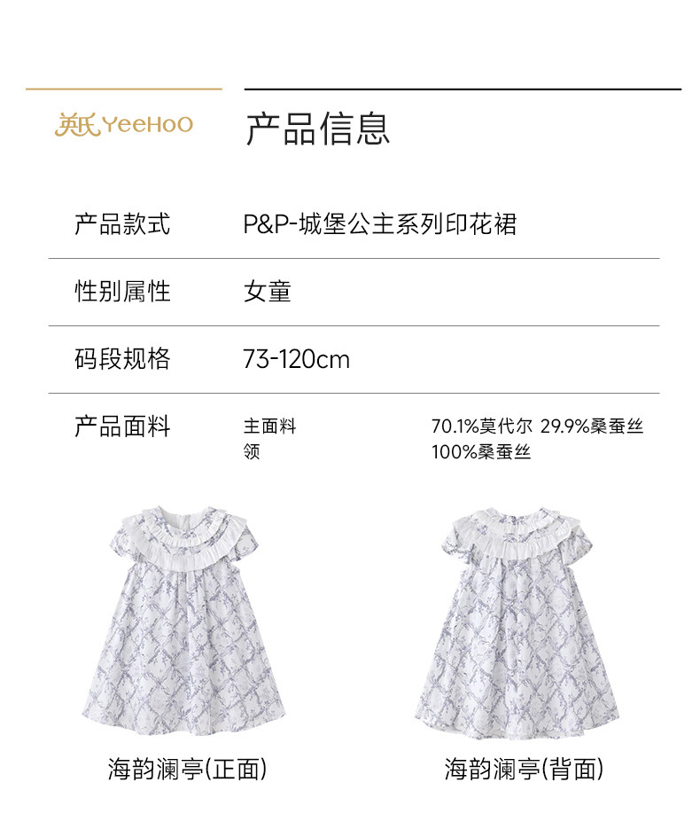 英氏女童连衣裙春夏季新款短袖裙子宝宝公主裙YRLCJ2S031A