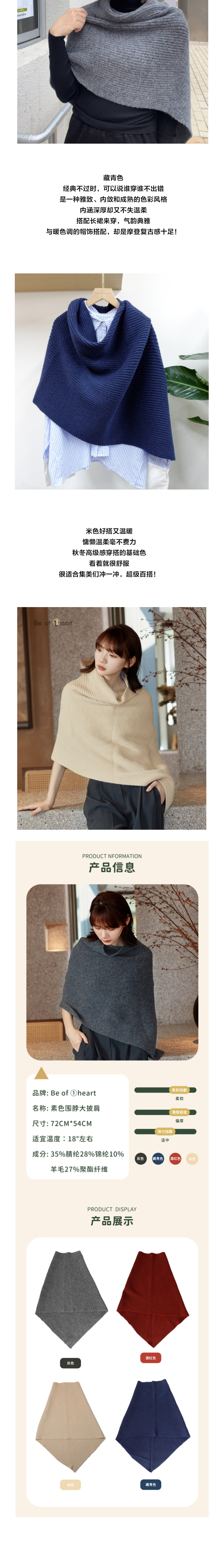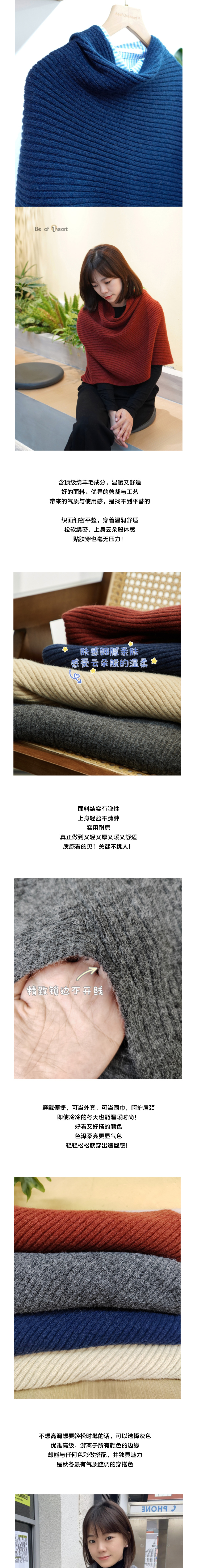Be of ①heart|羊毛素色围脖大披肩 羊毛混纺肤感细腻 不扎肉舒适软糯