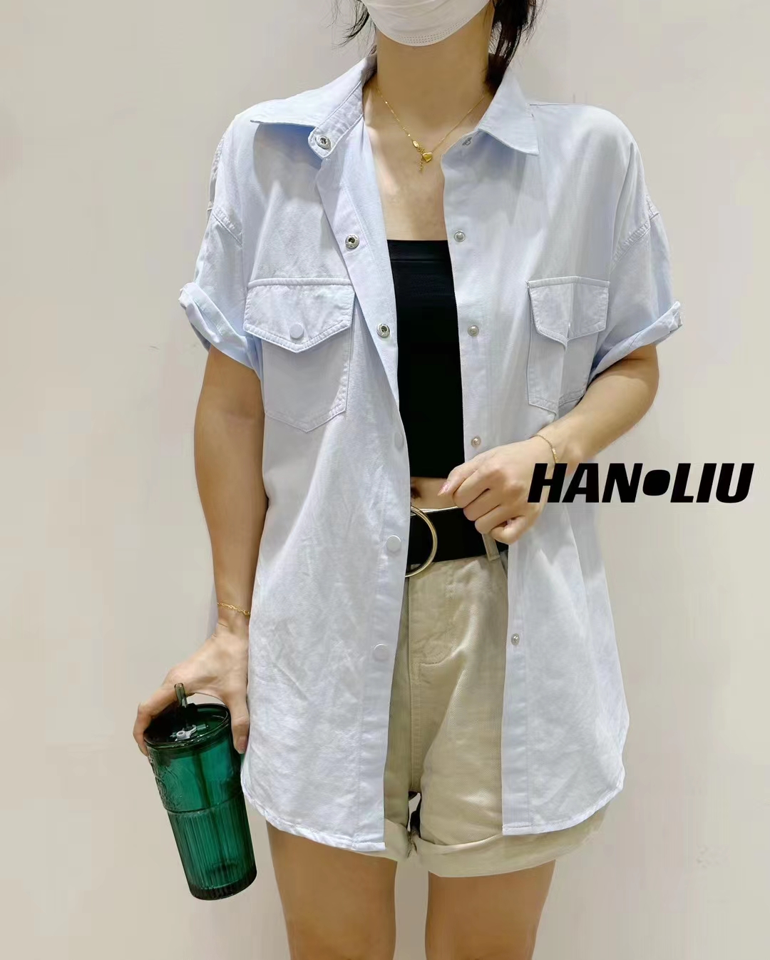 9851 # 均码 小清新短袖衬衫外套 薄款韩版百搭休闲
