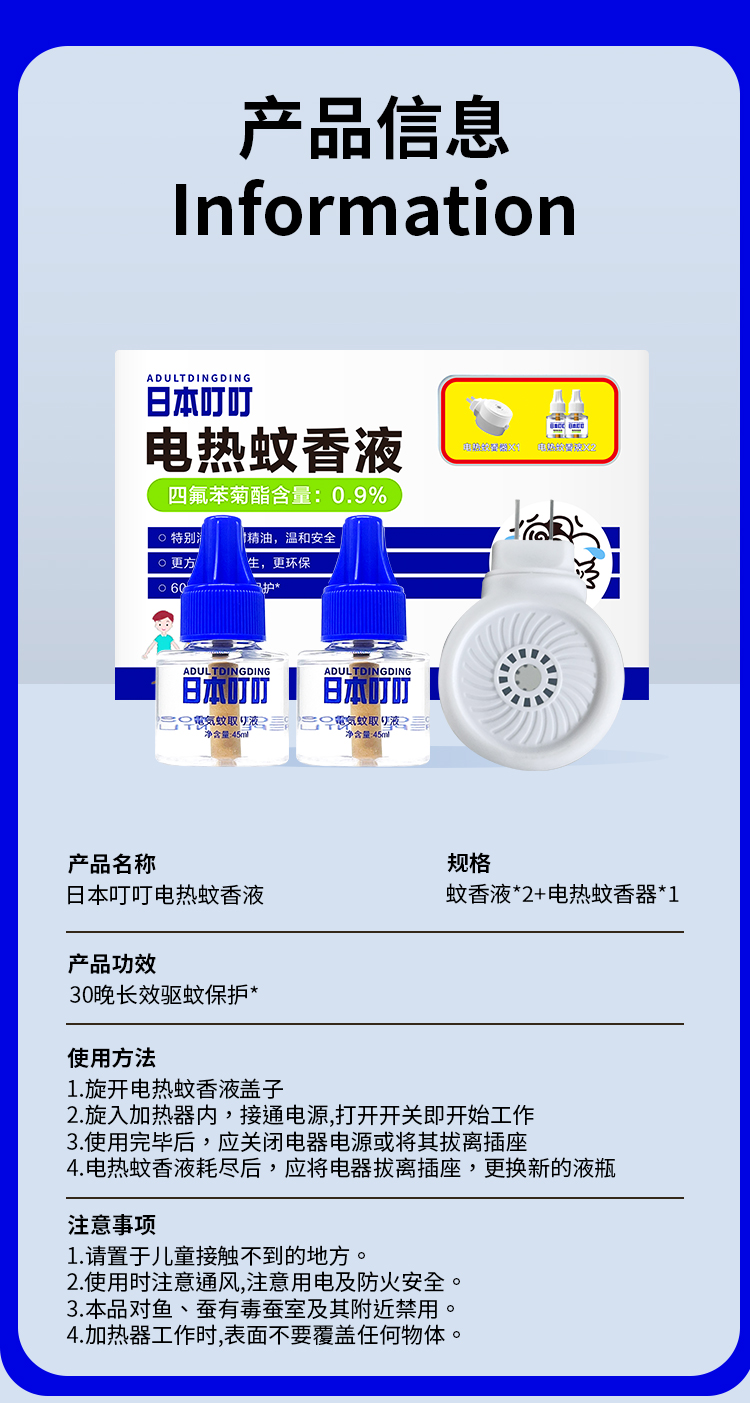 【日本叮叮】基孔肯雅热 防蚊虫叮咬神器 电热蚊香液(一器两液) -FN