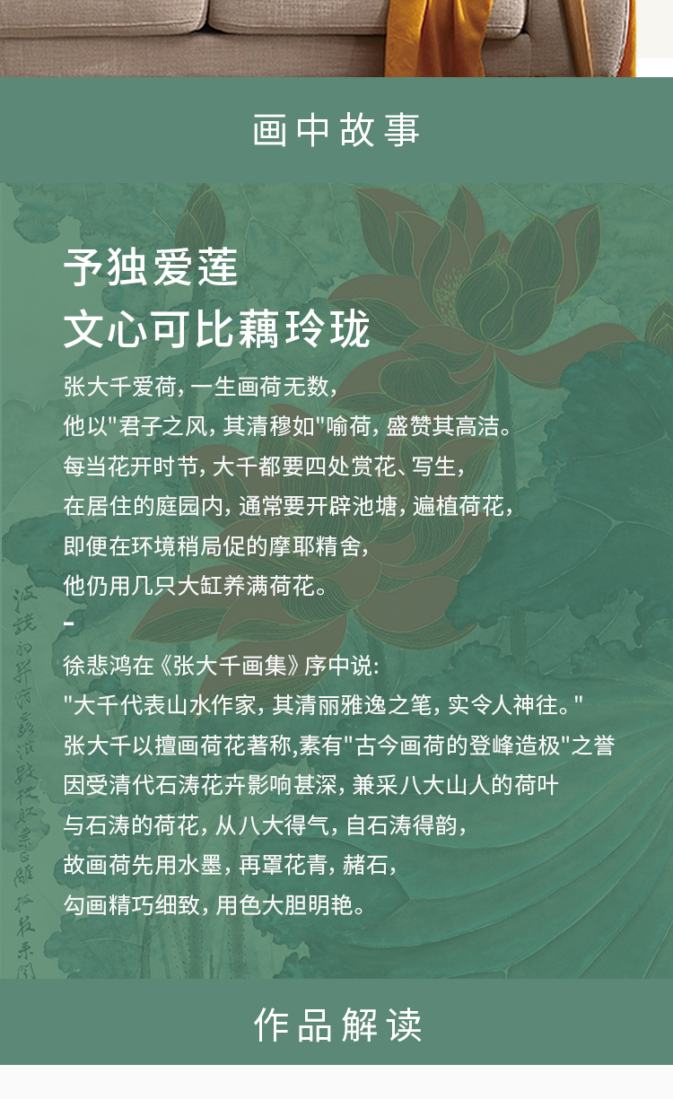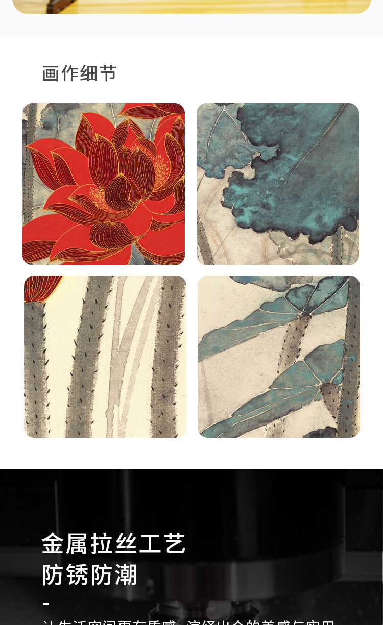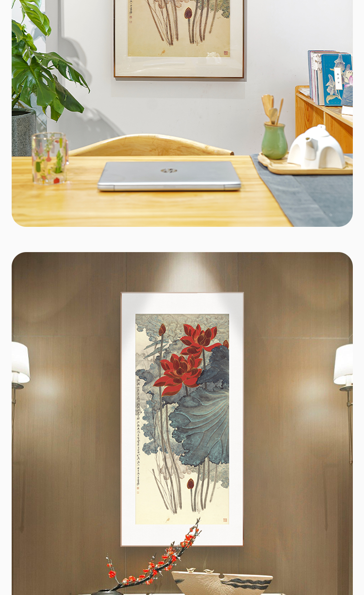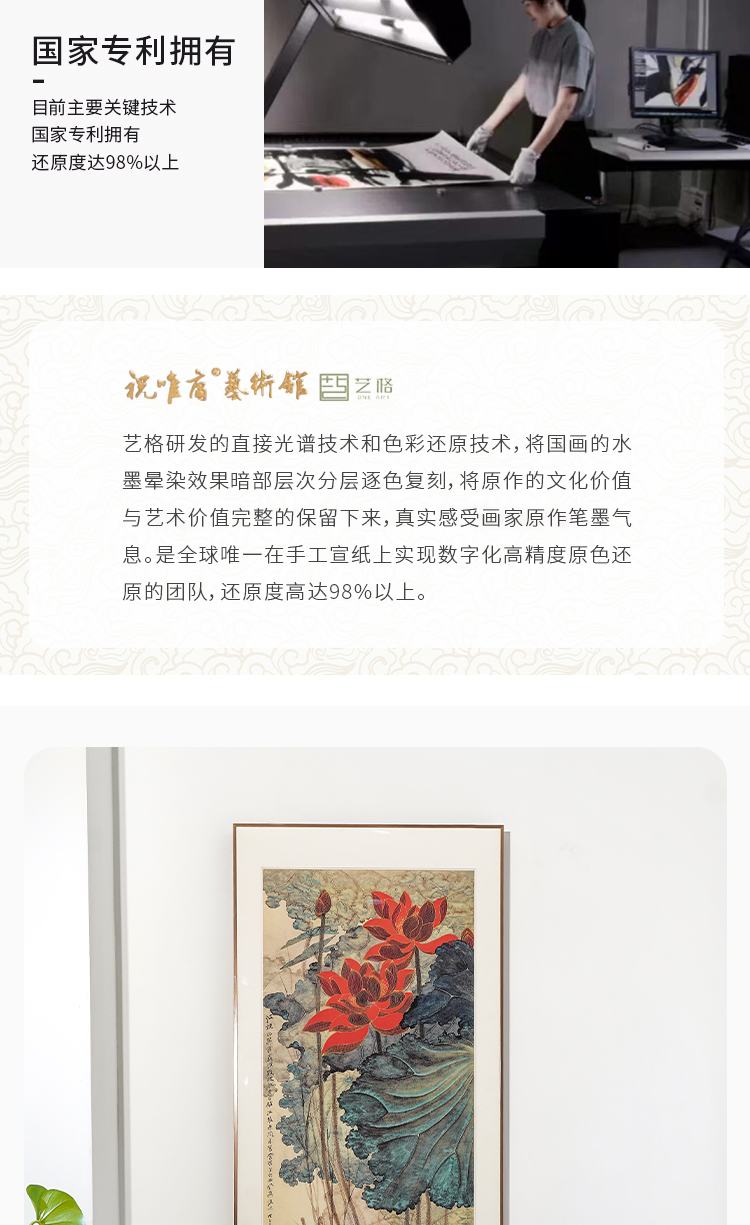 张大千《金线荷花》 博物馆原版复刻画 精品金属卡纸框(付款后15天发货)