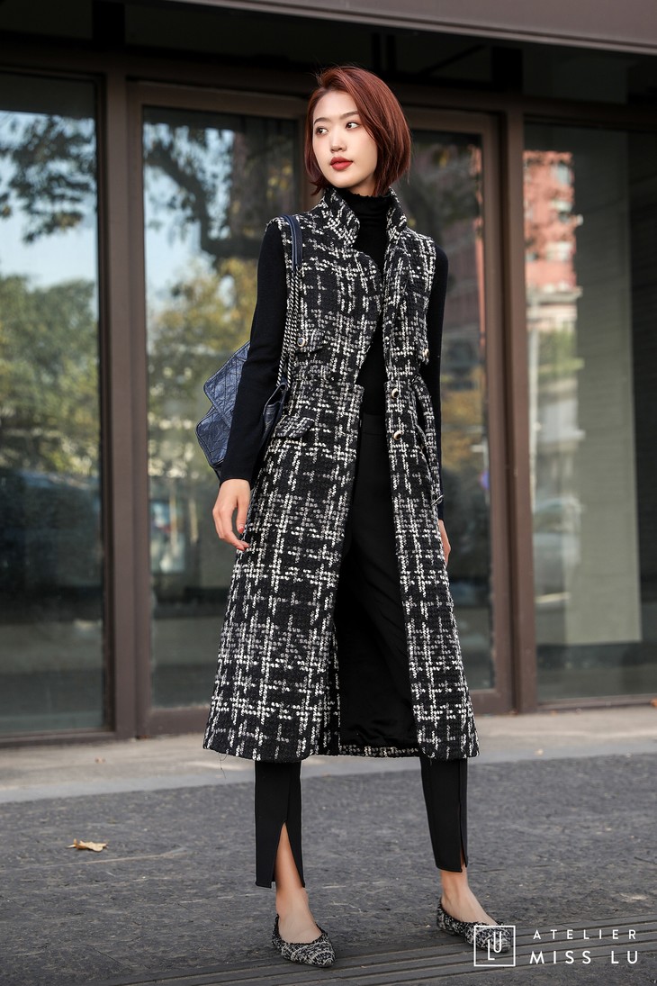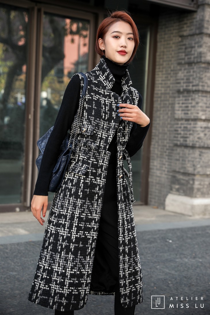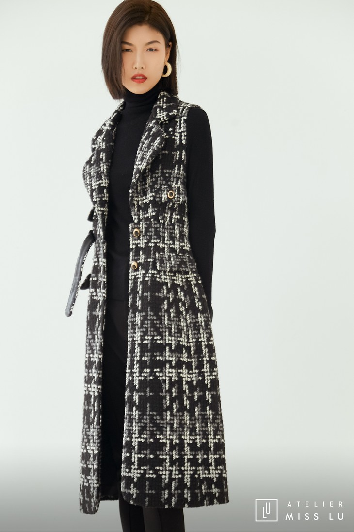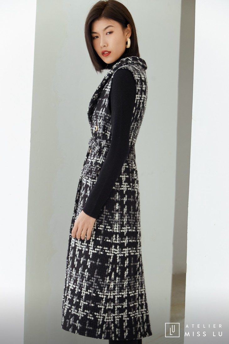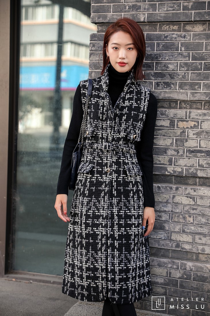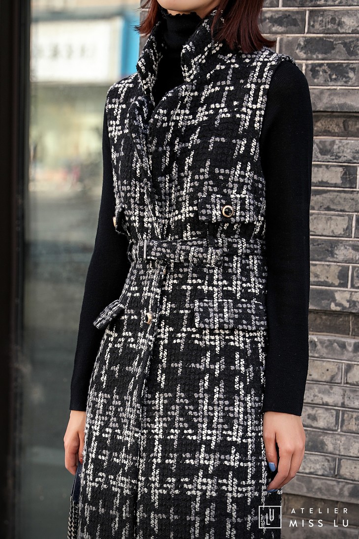 AtelierMissLu / Odete-黑白粗呢格修身长马甲