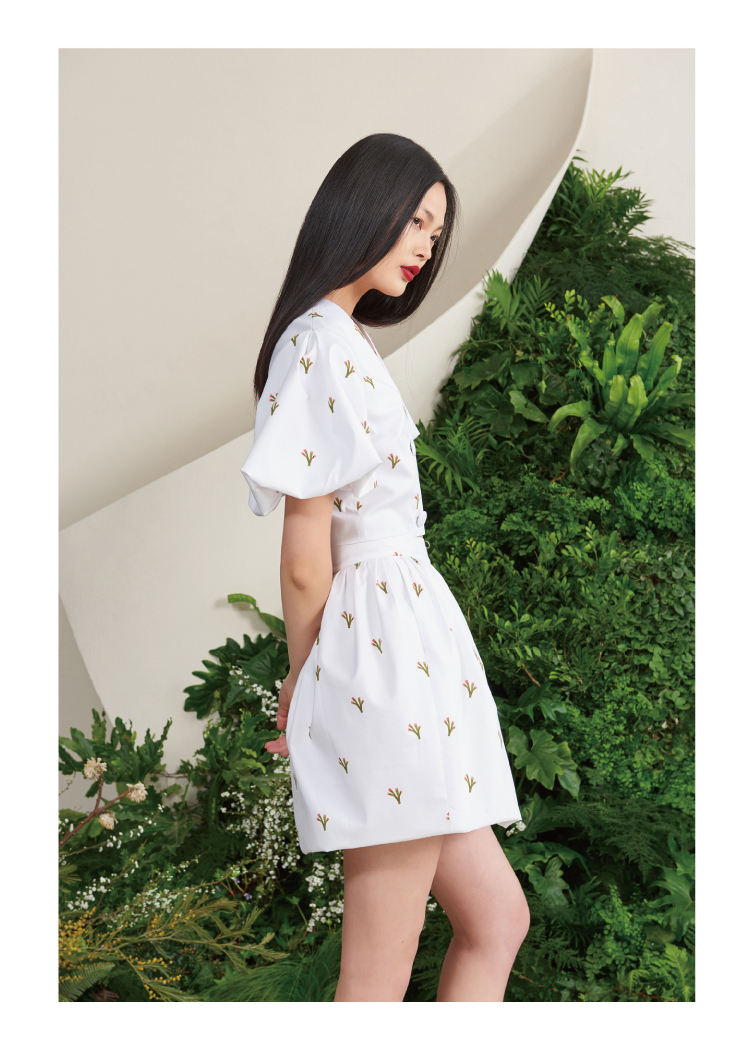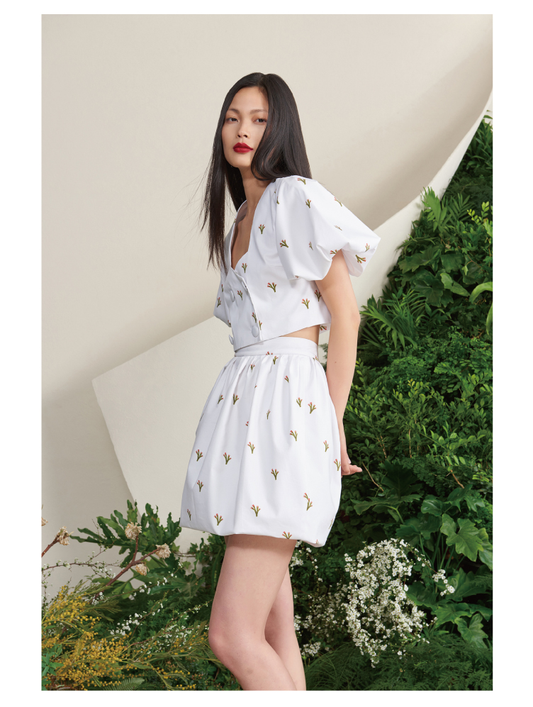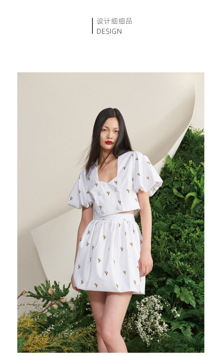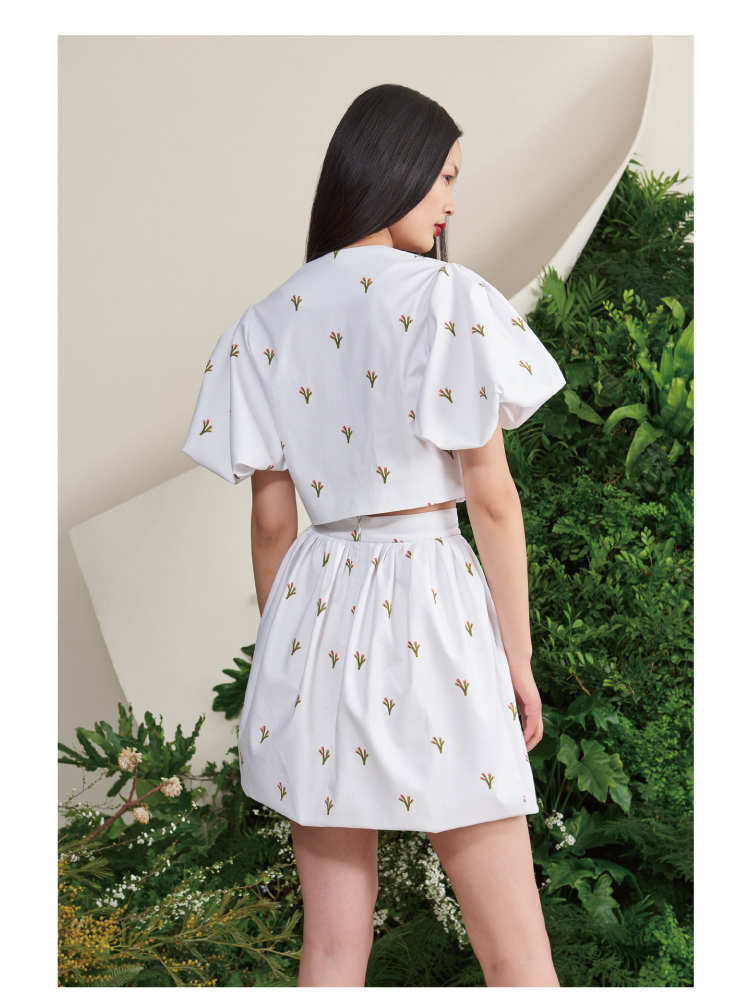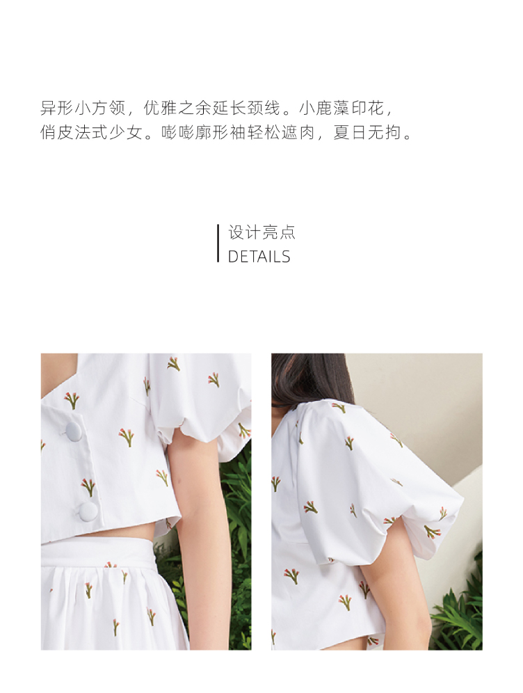 【苏茜】小鹿藻异形小方领泡泡袖短上衣/00182