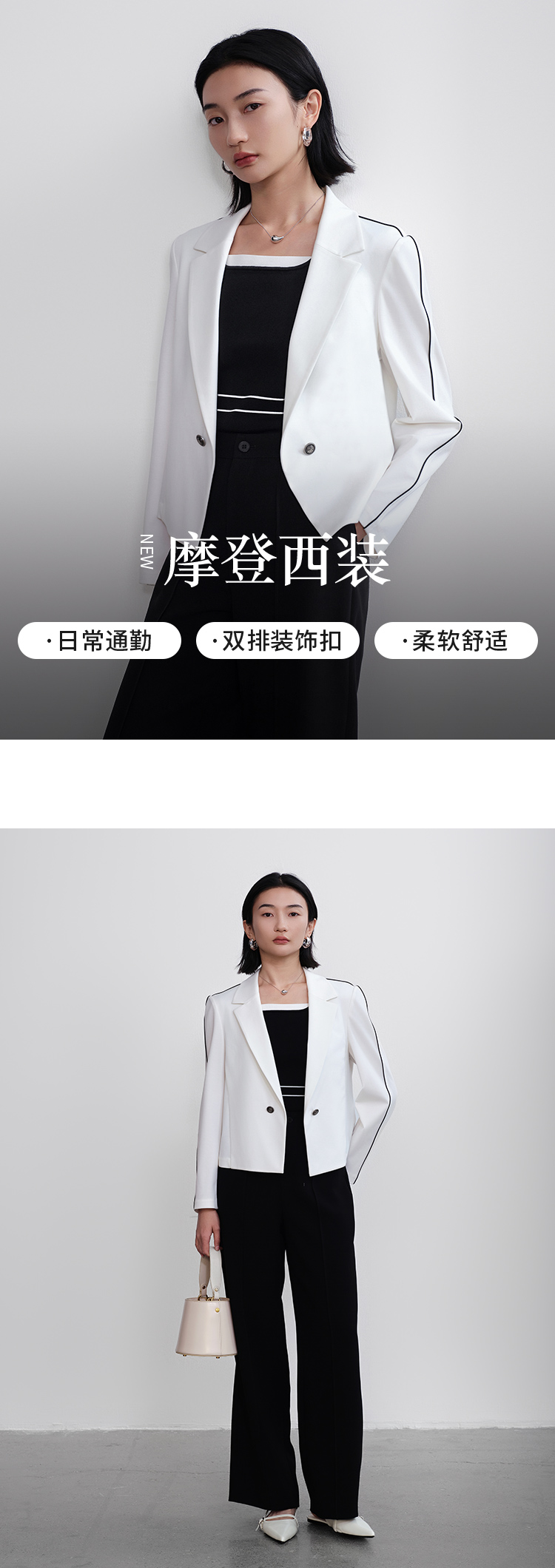 【商场同款】CNX5366 “摩登西装”撞色线条的设计细节 日常通勤好穿好搭