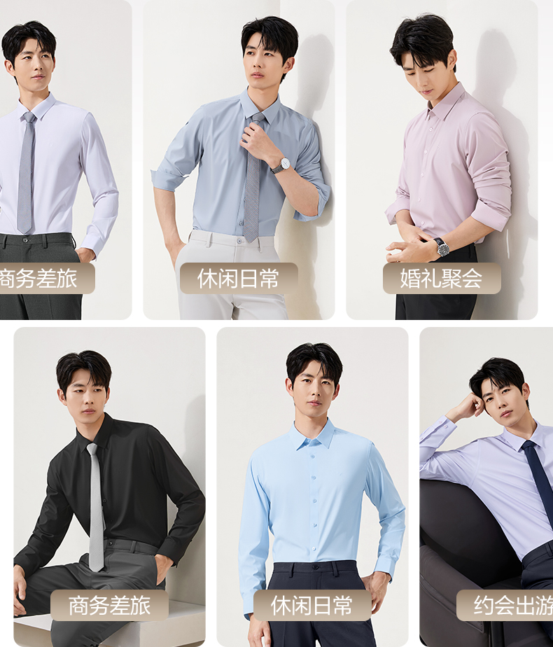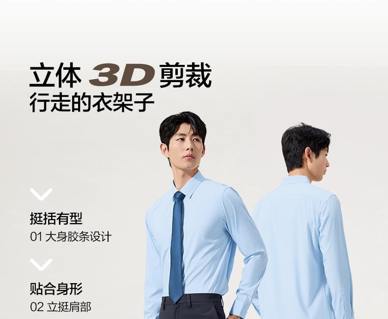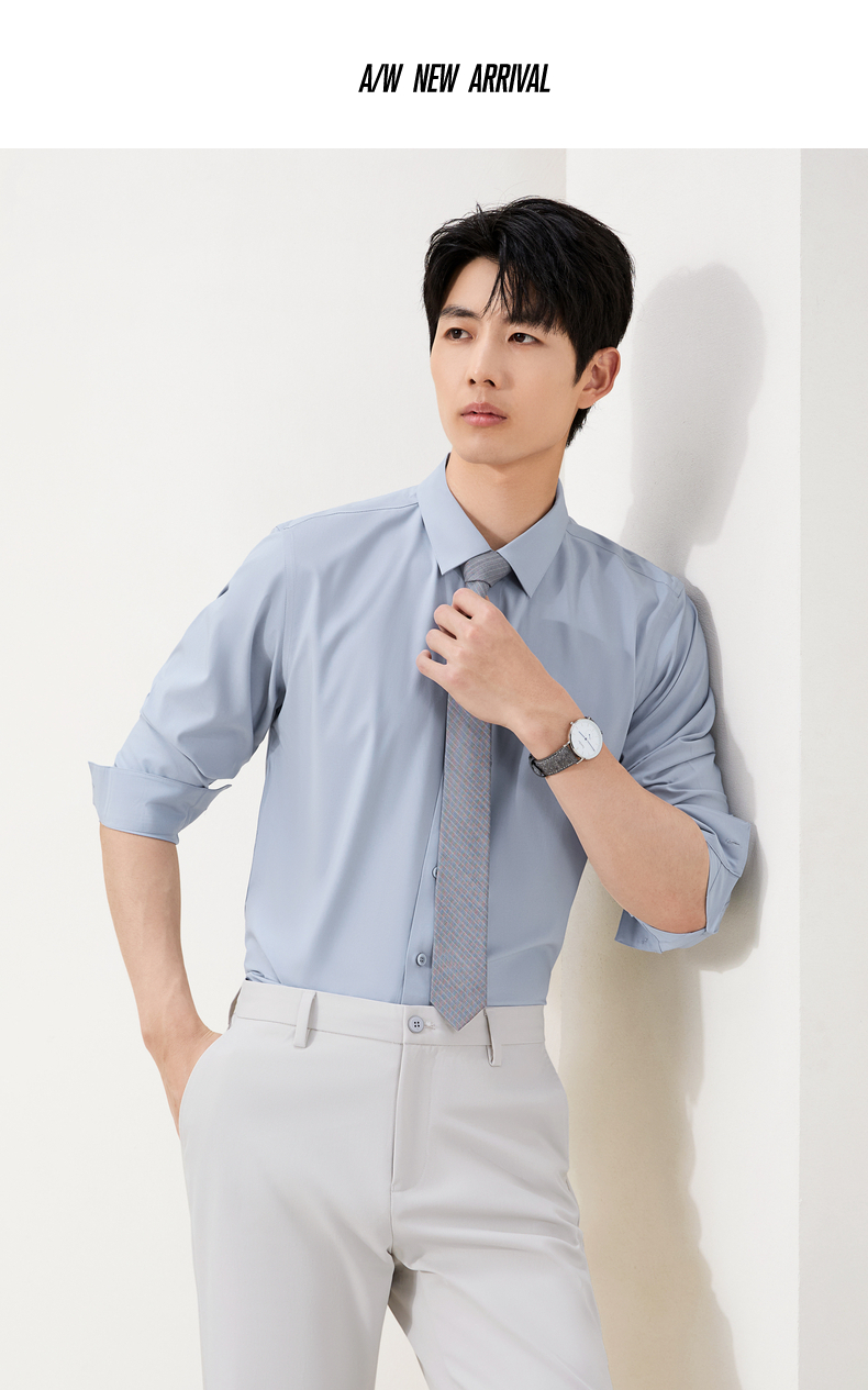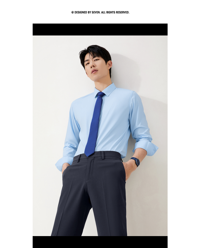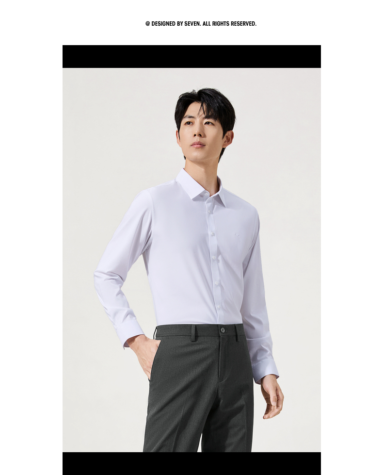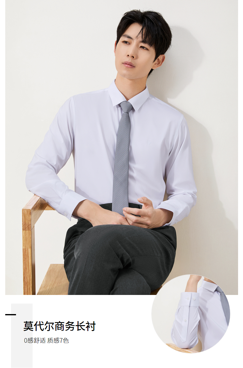 【7A抗菌2A防螨/胶条衬衫】柒牌长袖衬衫男秋季新款商务正装衬衣129A70260
