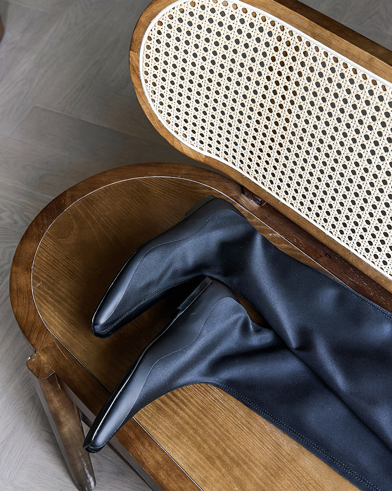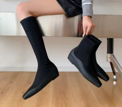 现货 THS-限时 row家 女士 秋冬袜子靴 方头超模气场 极简方头袜靴 长靴 短靴 BZ1276
