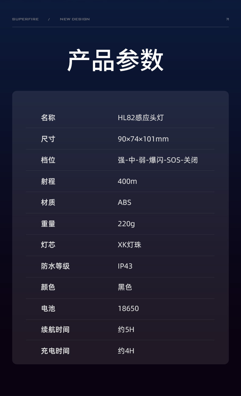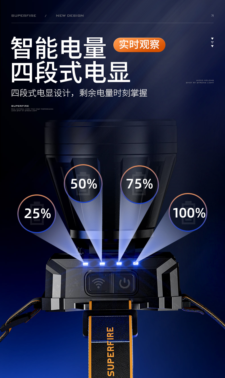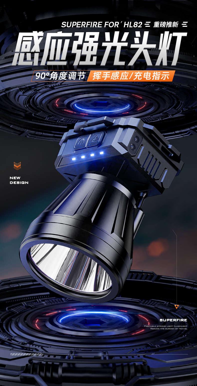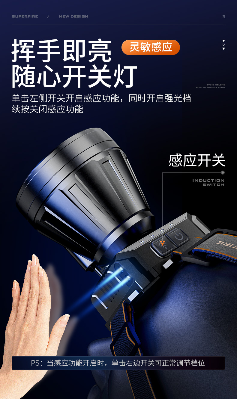 SUPERFIRE神火HL82感应强光夜钓灯高亮可充电钓鱼专用赶海头灯