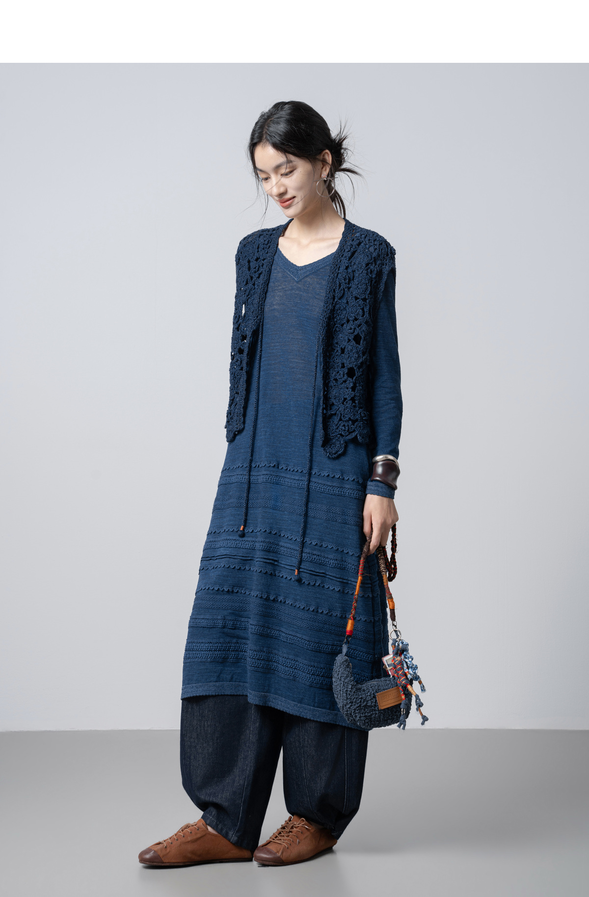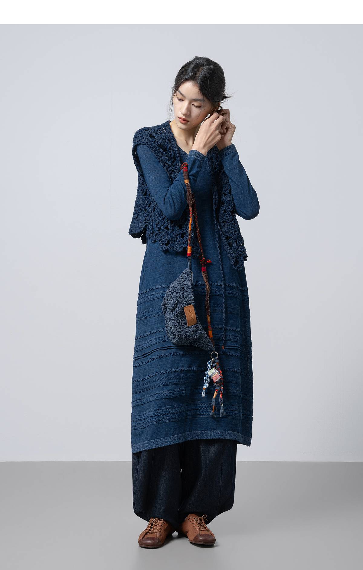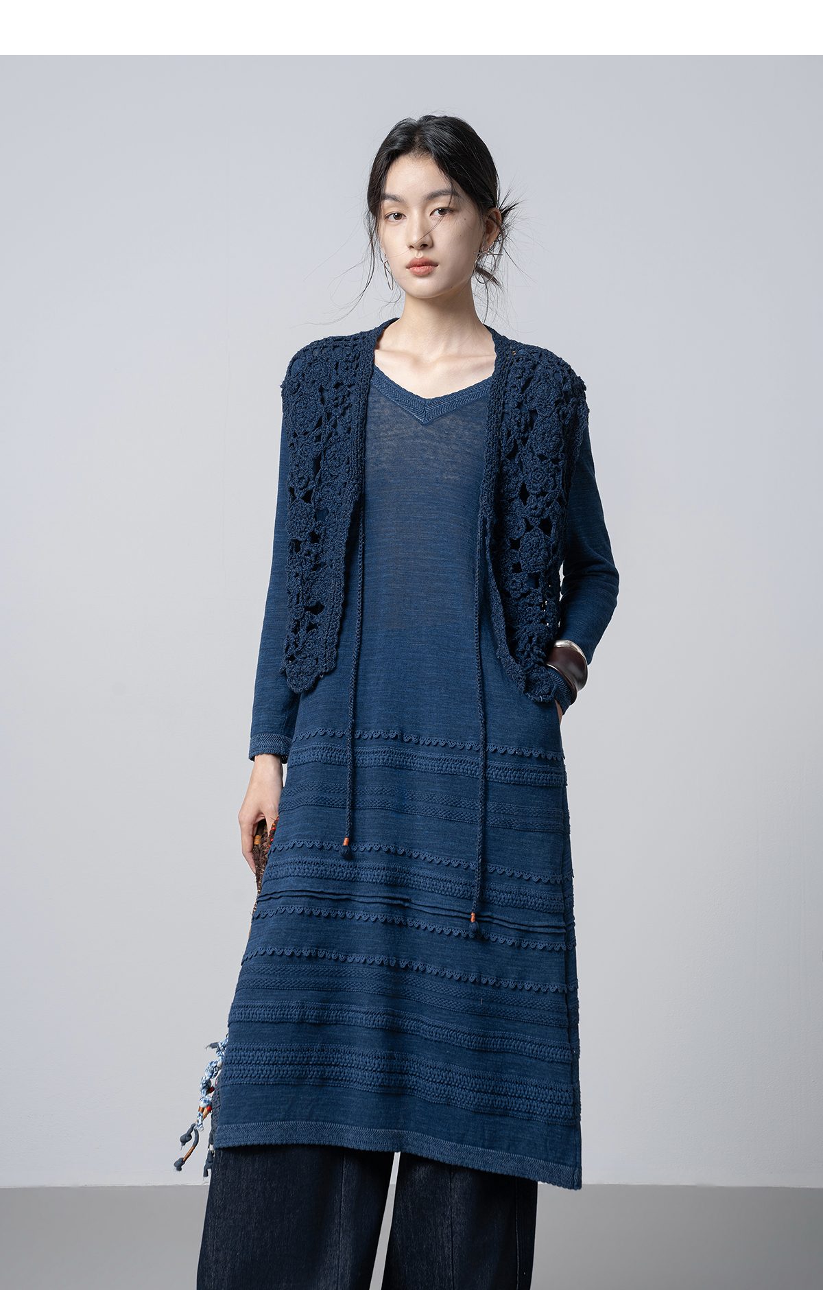【林栖设计小店】手钩织带|手工植物染棉麻优雅花边2026春新款毛织连衣裙1961215