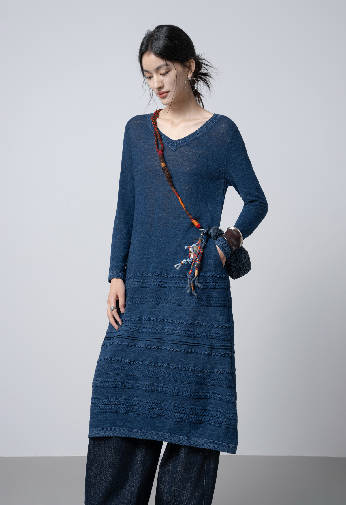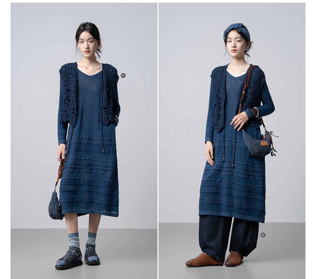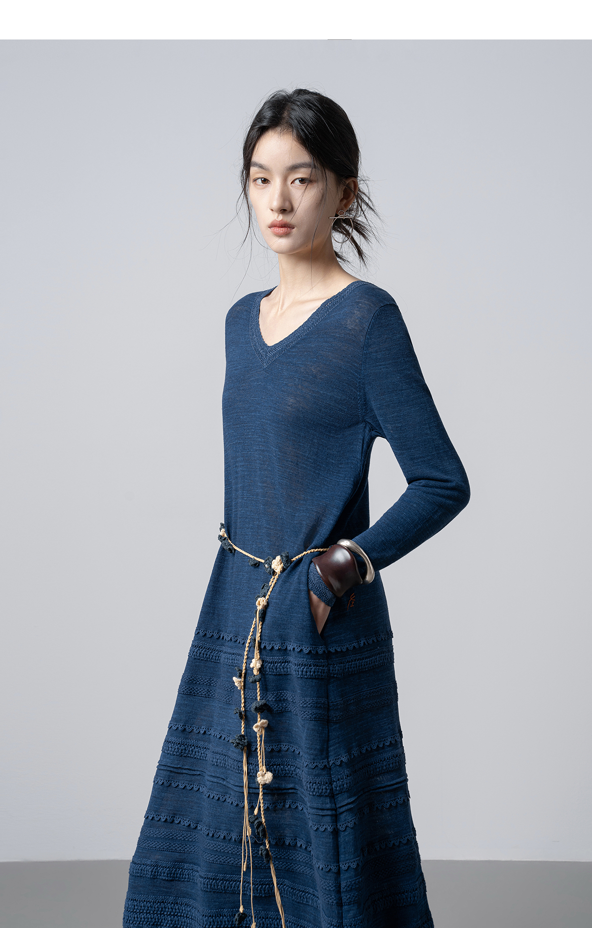 【林栖设计小店】手钩织带|手工植物染棉麻优雅花边2026春新款毛织连衣裙1961215